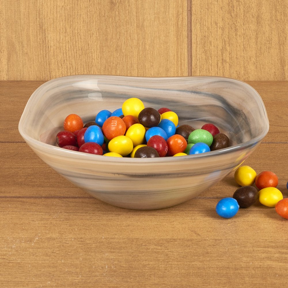 Juego de dos cuencos cuadrados de vidrio de alabastro blanco y topo de 6" para dulces o frutos secos