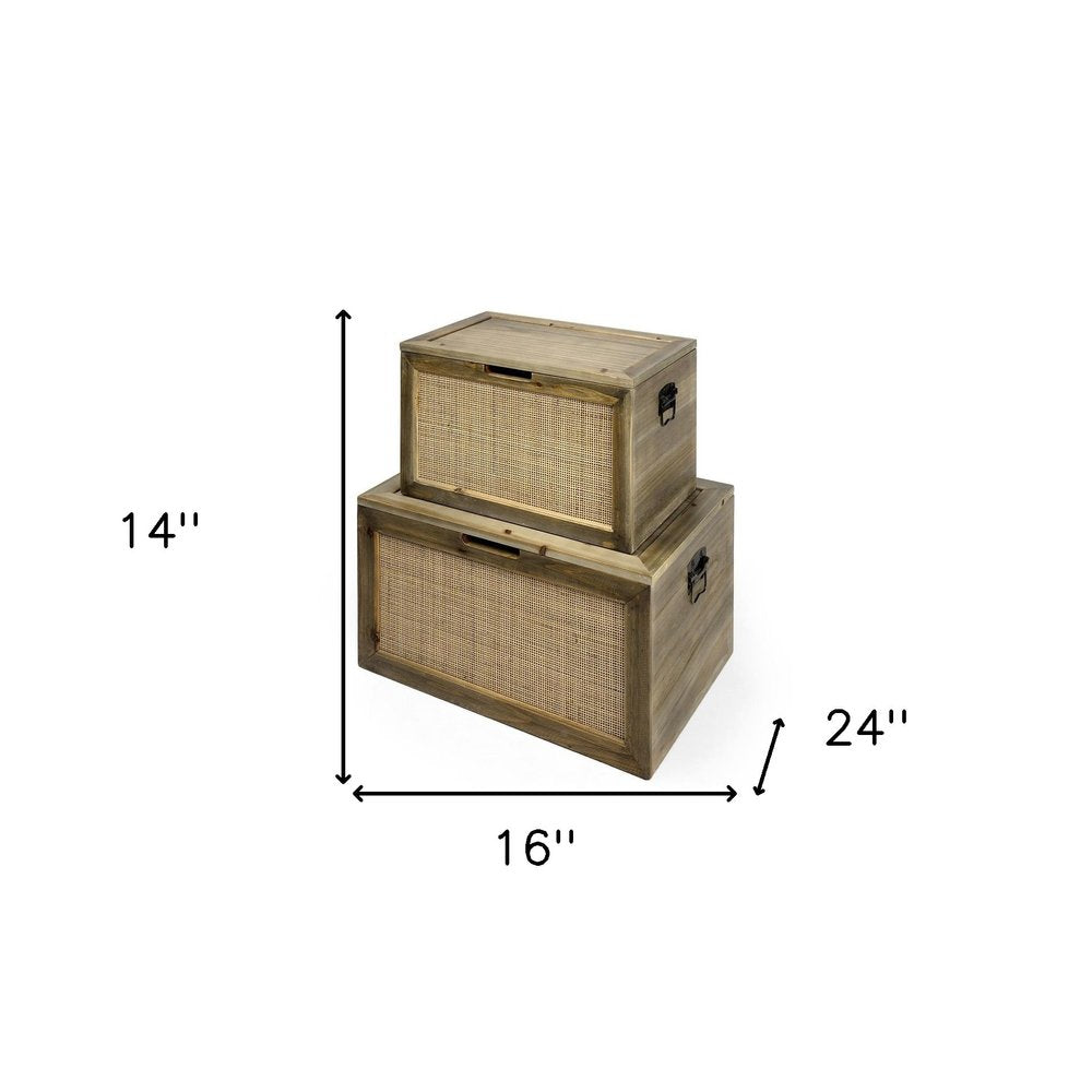 Conjunto de dos cajas de almacenamiento de madera y caña en tonos marrones y naturales