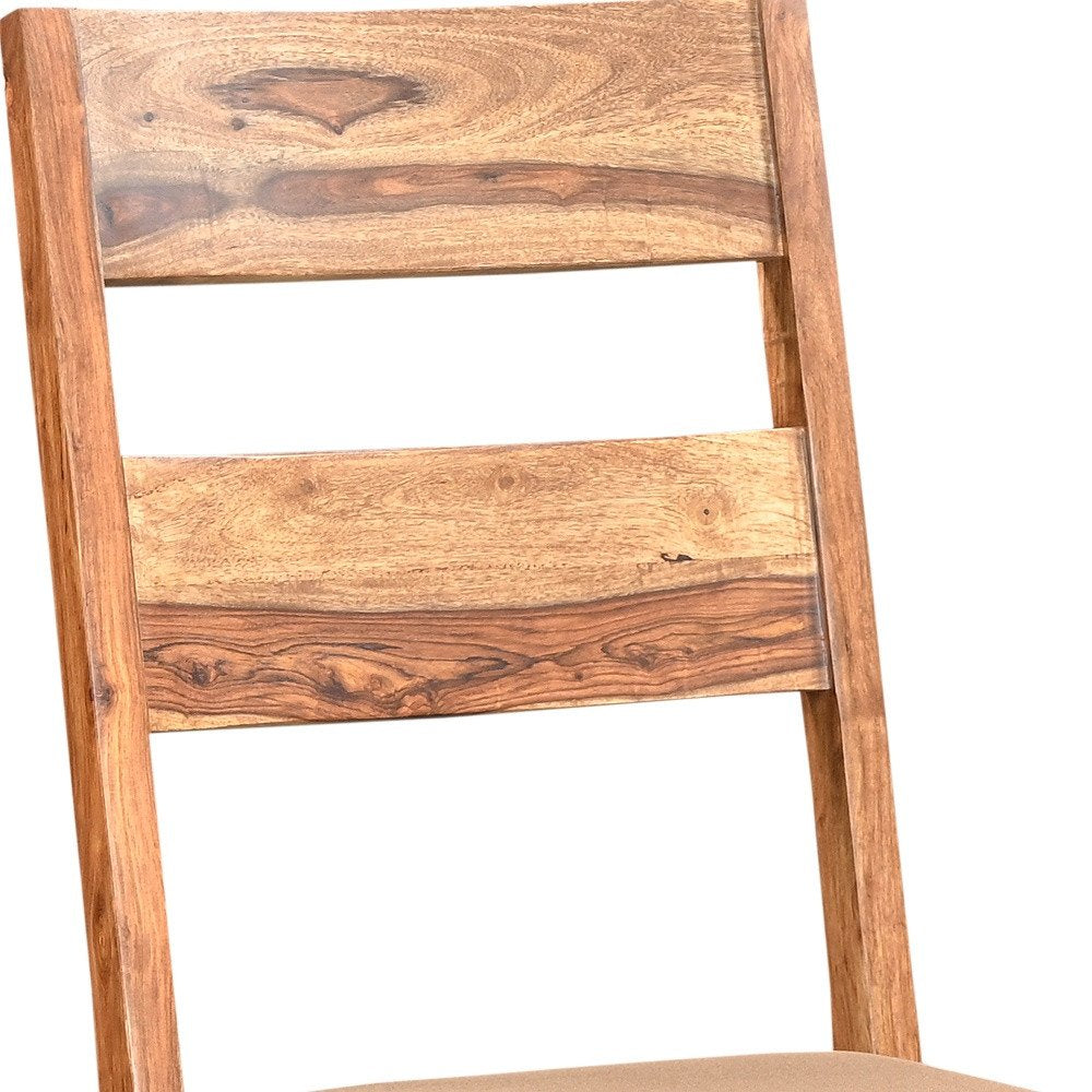 Set of Two Brown Fabric And Wood Ladder Back Dining Side Chairs