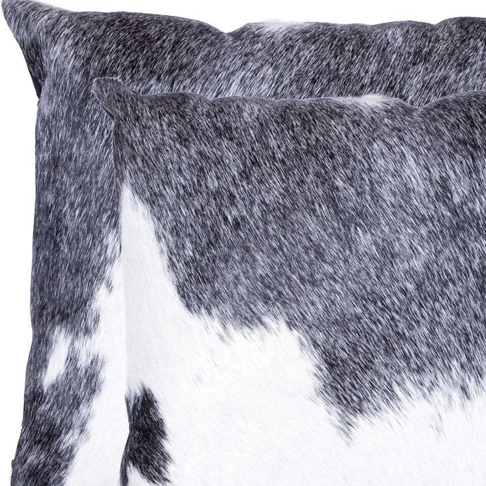 Set of Two Silver and Gray Cowhide Throw Pillow