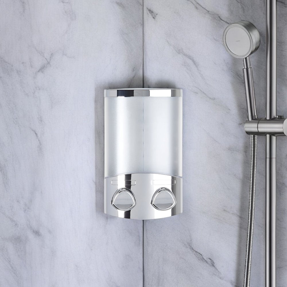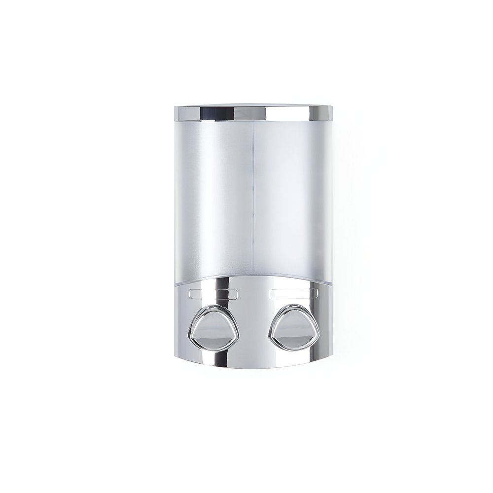 Add this aesthetically pleasing silver heavy duty plastic two chamber wall mount soap dispenser to your bathtub, shower, or sink area for a good looking and practical dispensing solution. Help to alleviate clutter and give your space a clean and cohesive look and feel. Holds a total capacity of 21 ounces spread between 2 individual compartments. Dispenses just the right amount of liquid each time, making this a potential money-saver as it cuts down on waste and allows you to buy bulk sized refill bottles of your product that are not only typically more cost effective, but are eco-friendly as well. 7.5-inch H x 4.75-inch W x 3.25-inch D