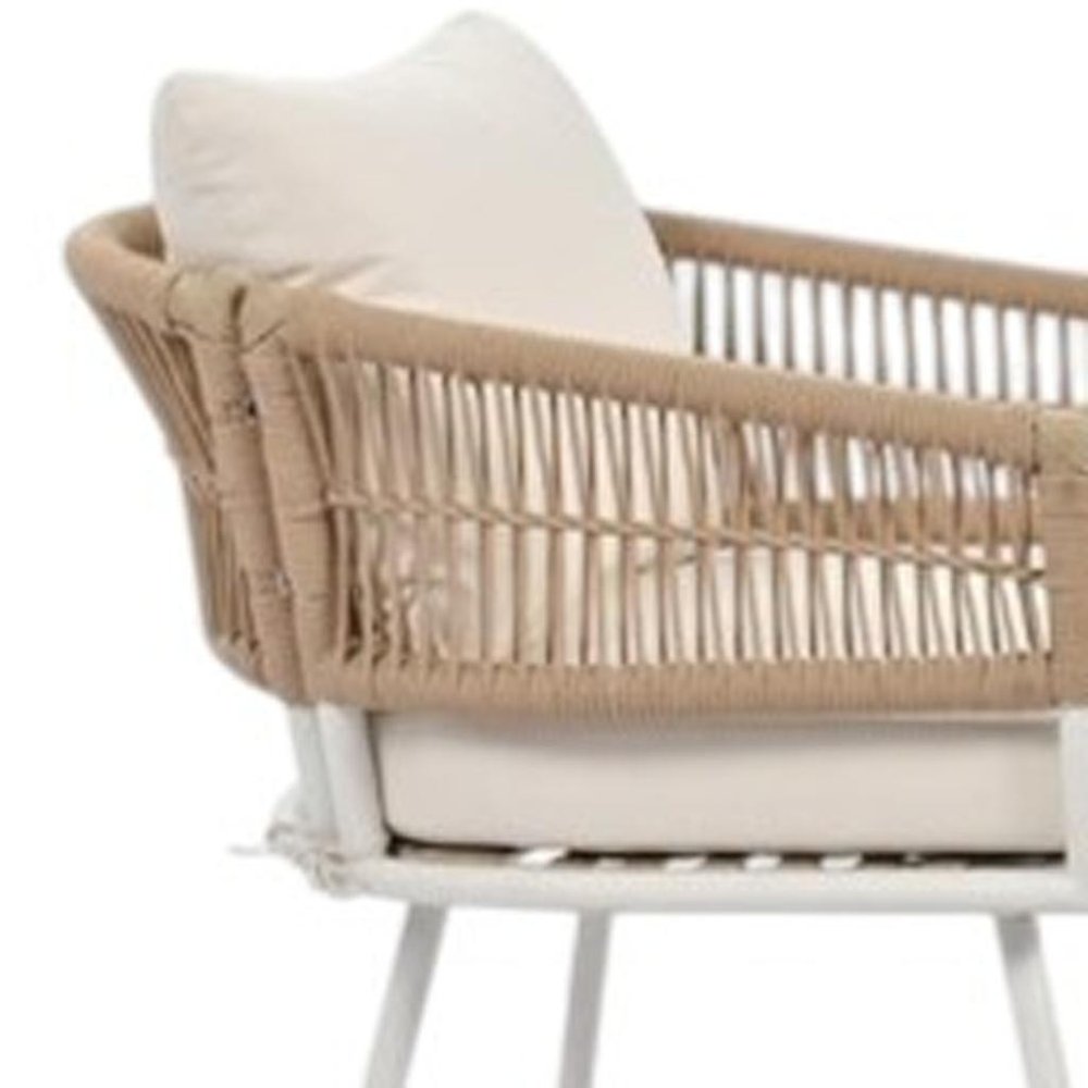 Six Piece White and Beige Metal Upholstered Cushions Sofa Seating Group With Table