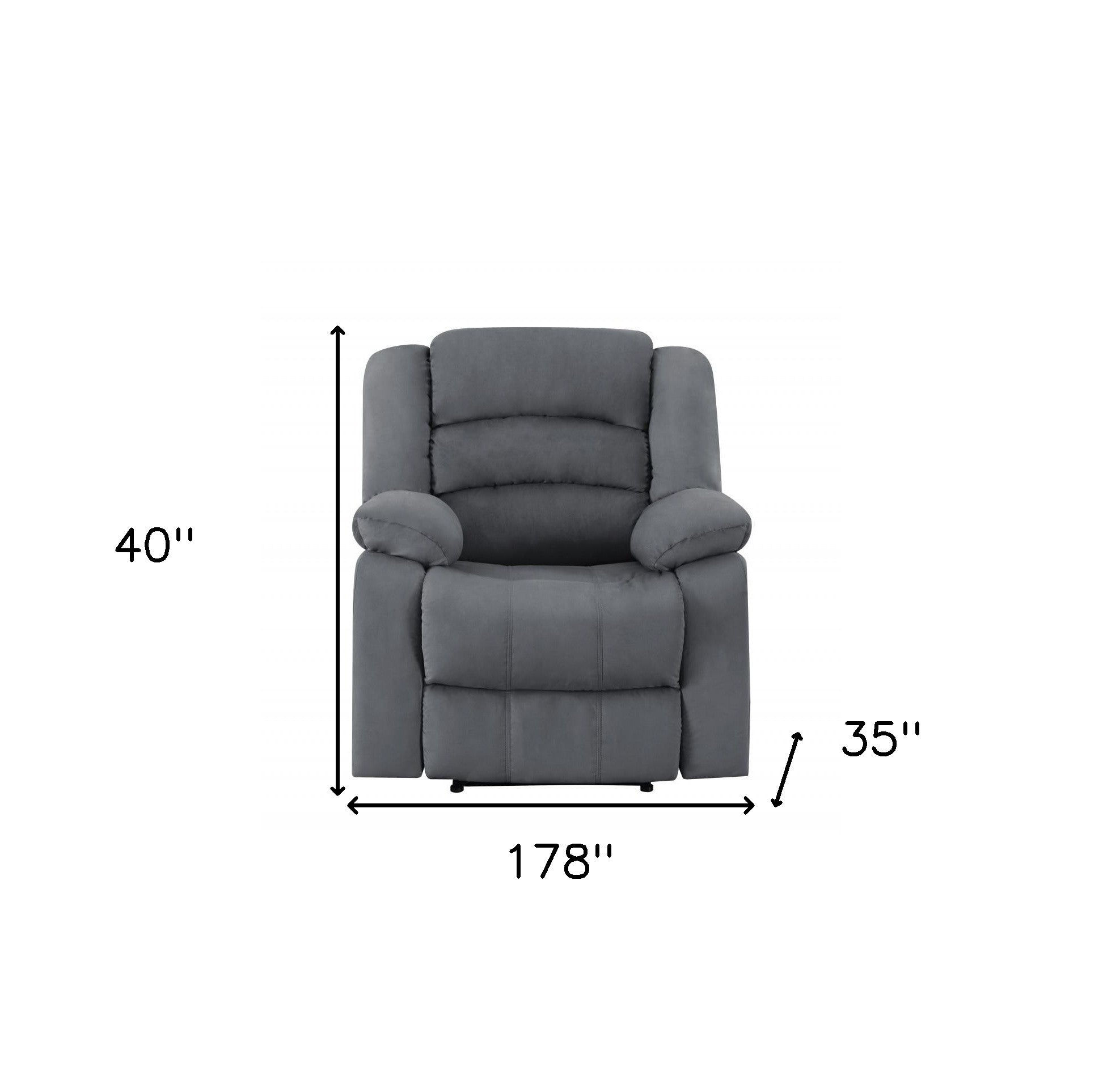 Step into a world of unparalleled seating comfort that is sure to dazzle even the toughest critic with our remarkable three-piece indoor gray microsuede six-person seating set. The reclining sofa will transform your space into a cozy haven for leisurely activities, movie nights, or even quick power naps. Transform your home into a sanctuary of comfort and style with a seating set boasting microsuede renowned for their durability, ensuring years of enjoyable and fashionable seating. Coil spring seat construction provides excellent comfort by offering a responsive and supportive seating experience, gently contouring to the body's natural curves. The inclusion of a loveseat into your mix allows a fashionable seating option in a compact design. Chock full of value, this set has it all. 40-inch H x 178-inch W x 35-inch D