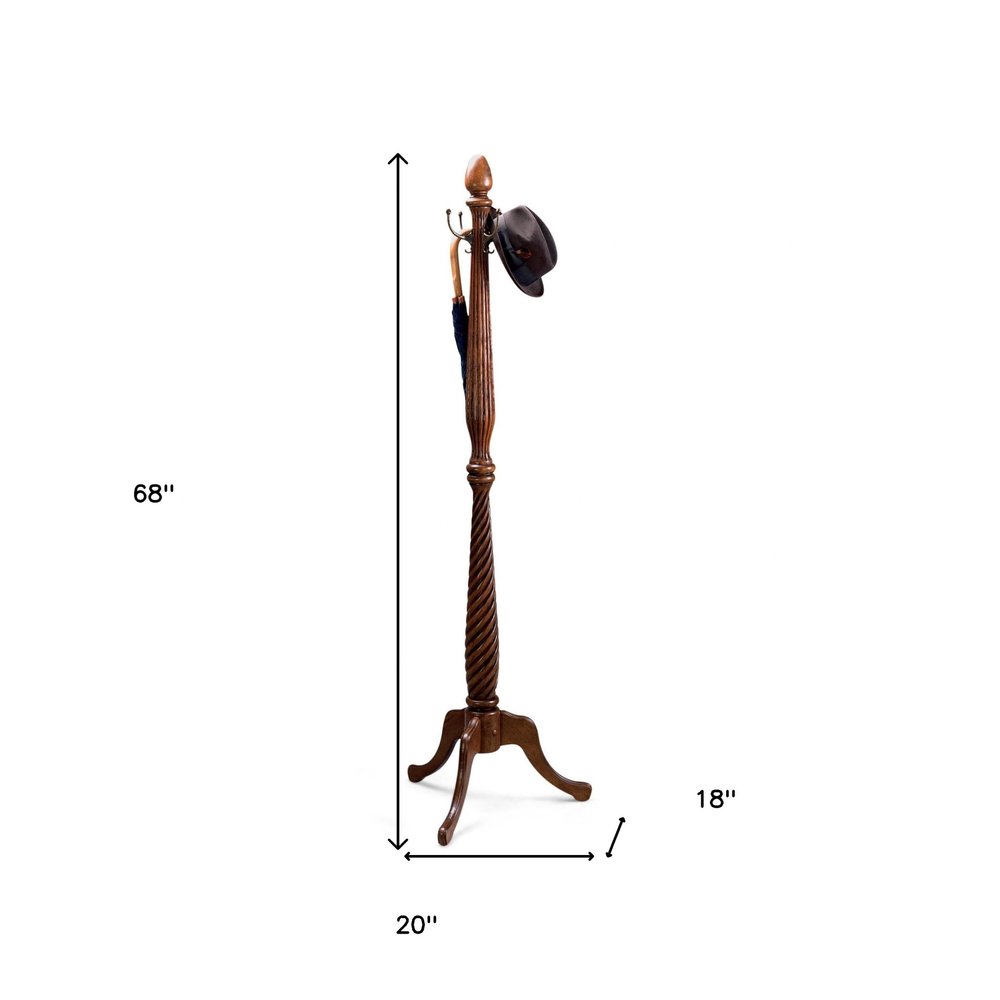 Decora tu casa u oficina con elegancia con este exclusivo perchero de madera tallada a mano para abrigos y sombreros. Este atractivo perchero de madera, de estilo tradicional y acabado cerezo, cuenta con ganchos robustos y prácticos que te permiten colgar diversas prendas, como abrigos y chaquetas, junto con otros accesorios como bufandas, sombreros, bolsos, maletines, fundas para portátil y paraguas. Los múltiples ganchos chapados en latón ayudan a distribuir la presión uniformemente para un mayor equilibrio, mientras que el robusto poste y base de madera aportan estabilidad y robustez, facilitando la sujeción de abrigos, chaquetas y trajes pesados. 172 cm de alto x 50 cm de ancho x 45 cm de profundidad.