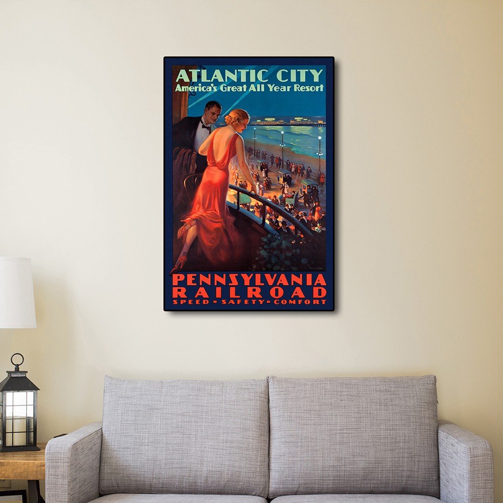 This vintage 1935 Atlantic city travel unframed print wall art will add a beautiful decorative accent to your decor. This print is a visual artistic expression that allows you to decorate your space in style. Unframed, this flat poster art has a fresh and distinct taste to grace your walls with style. Reproduced for you on paper, this hanging decorative accent will be a trendy and fashionable way to dress your walls. Hang on your wall to add some up-to-date fashion and decoration. Utilize this opportunity to create a focal point in the room with this fabulous wall decor option. 36 inches H x 24 inches W x 0.1 inches D