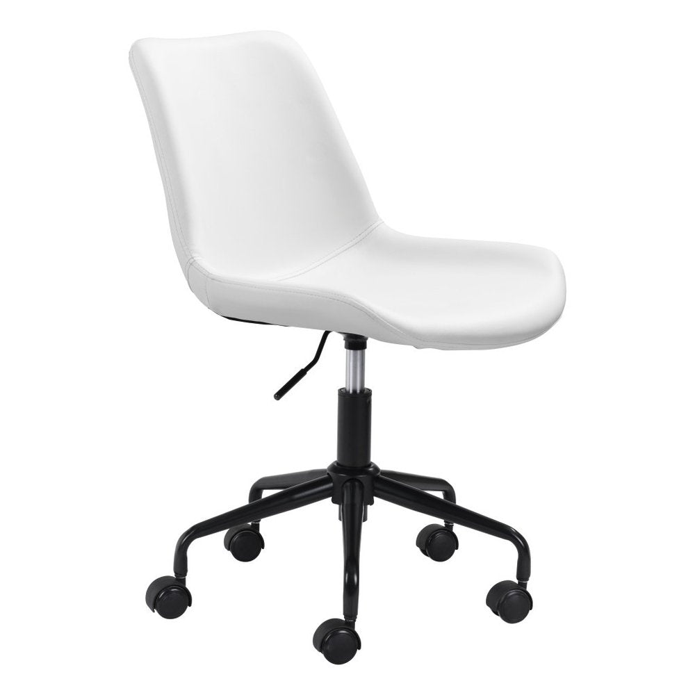Silla de oficina giratoria ajustable de piel sintética en blanco y negro