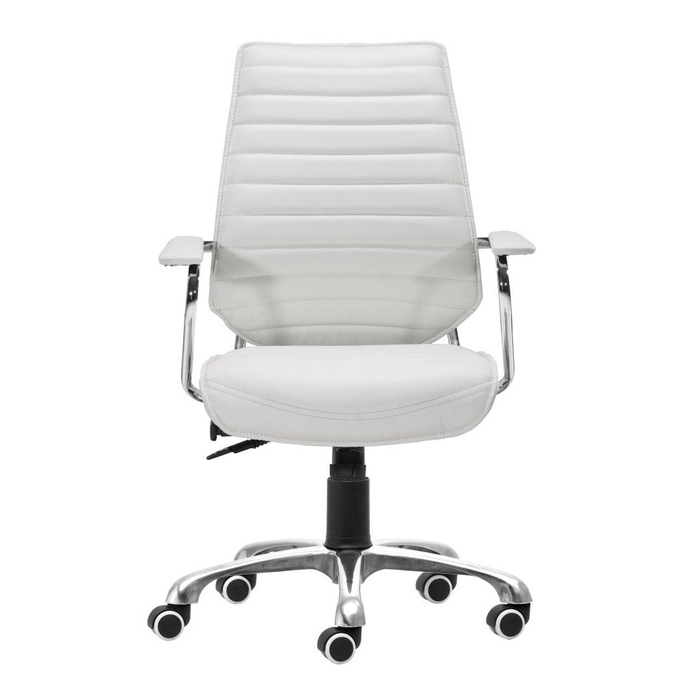 White and Silver Adjustable Height Swivel Rolling Office Chair
