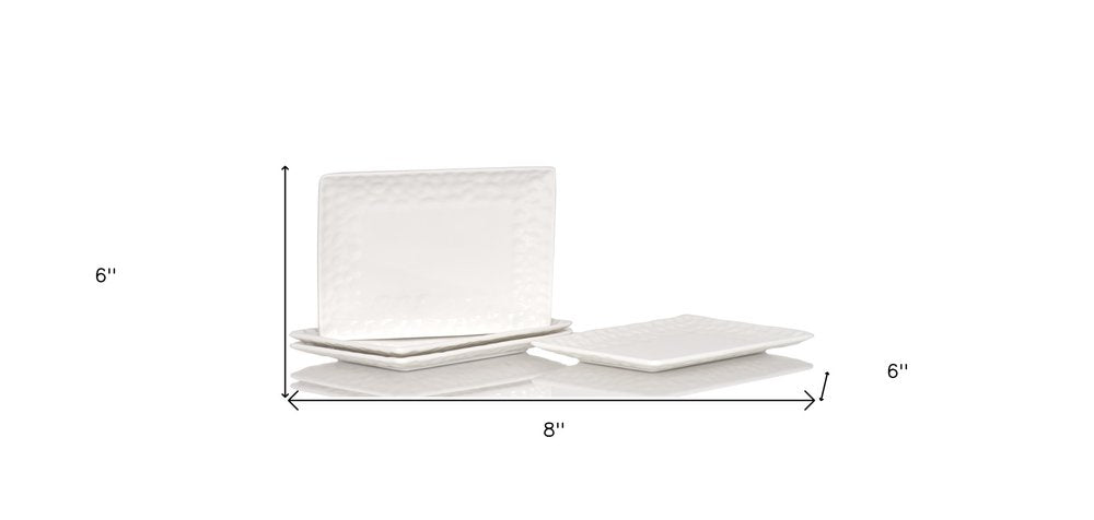 Juego de seis platos de ensalada de porcelana blanca rectangular con diseño de guijarros.