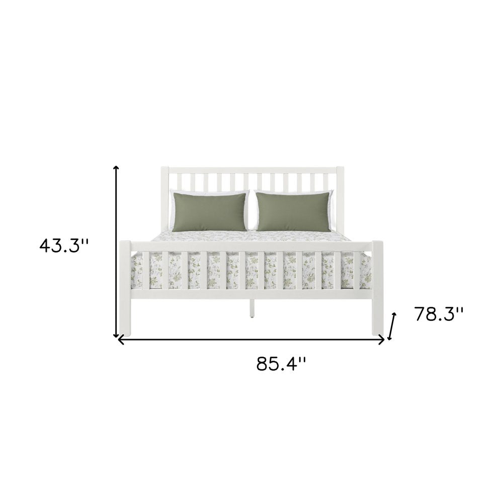 Create a haven for relaxation and sweet dreams with this fabulous white slat back solid wood queen bed frame. This stylish platform bed features a slat style headboard and footboard. We spend so much time in our bedrooms, thus making quality craftsmanship and good looks vitally important. This bed is the perfect way to make your bedroom comfortable and inviting. 43.3-inch h x 85.4-inch w x 63-inch d.