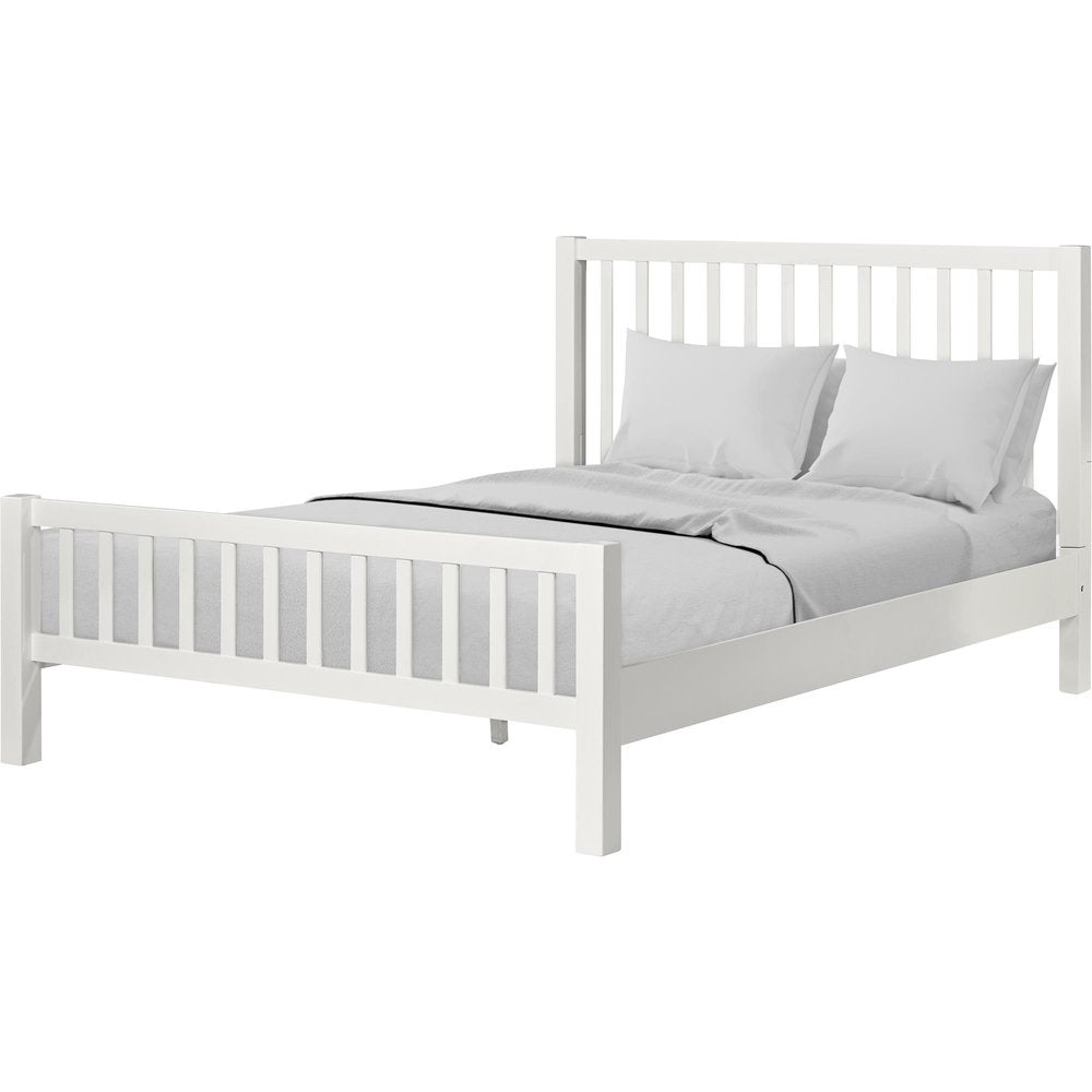 White Slat Back Solid Wood Queen Bed Frame