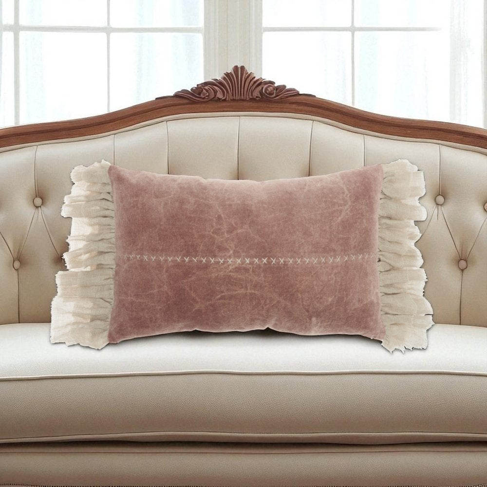 Add an air of fashion to your room and rejuvenate the space with this cute and fashionable wide tasseled marble pink lumbar pillow. This pink hued piece represents quality construction, expertly made from durable cotton blend that is not only long lasting but soft to the touch as well. This soft polyester filled pillow not only is decorative but made to be comfy and cozy all day long. Decorative throw pillows not only add color and dimension to your space but can be comfy and supportive when you are lounging and cuddling as well. Decorative pillows are a great way to change up the look and feel of your space easily and quickly. 14-inch H x 22-inch W x 5-inch D