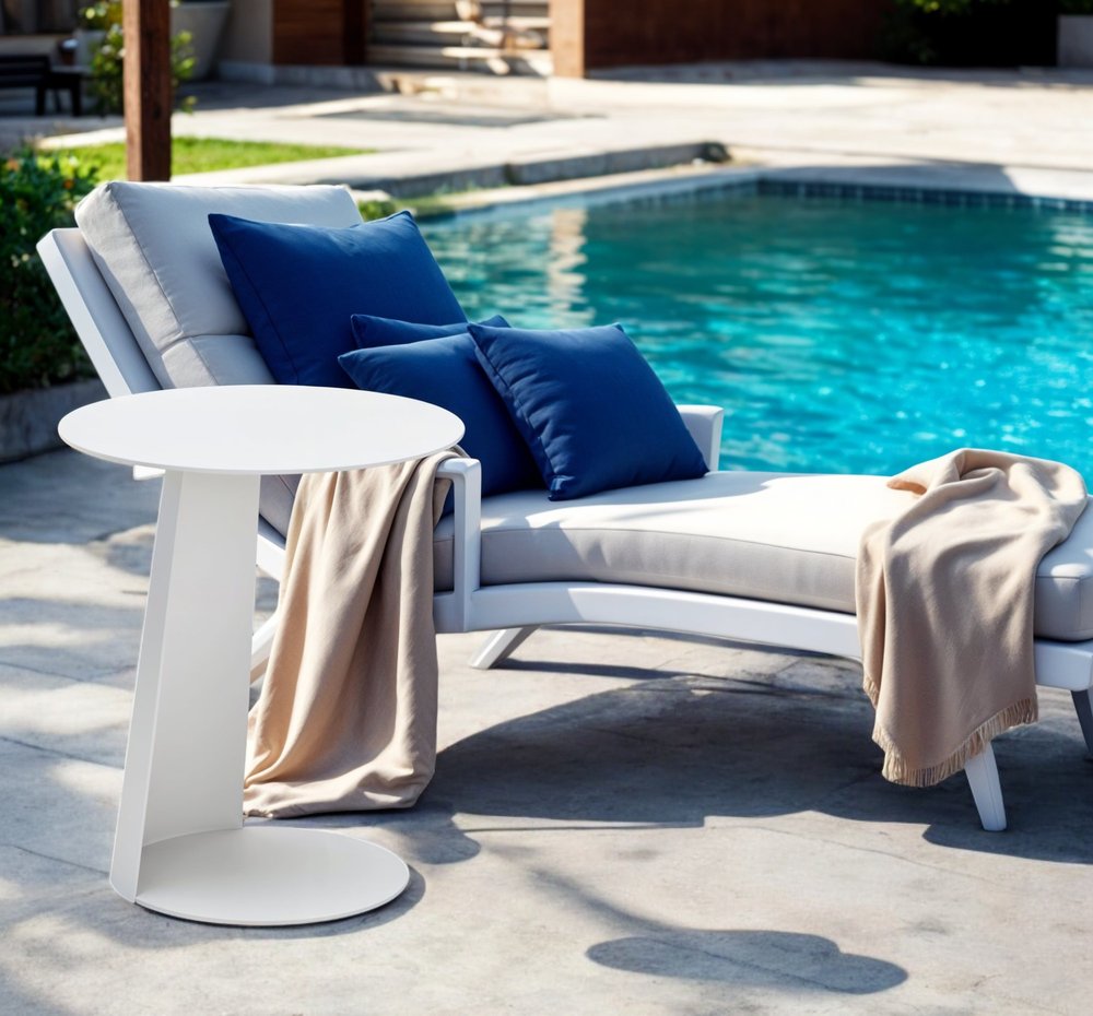 A must-have for anyone who loves to spend time outside. Whether you're hosting a summer barbecue, lounging by the pool, or just enjoying a sunny afternoon, this 16-inch white rounded aluminum outdoor side table is the perfect addition to your outdoor setup. With this modern side table, you will have a convenient place to keep items that you use frequently, such as your phone, glasses, or a cold glass of wine or lemonade at hand. Don't miss out on this must-have outdoor accessory. 18.9-inch h x 16-inch w x 16-inch d.