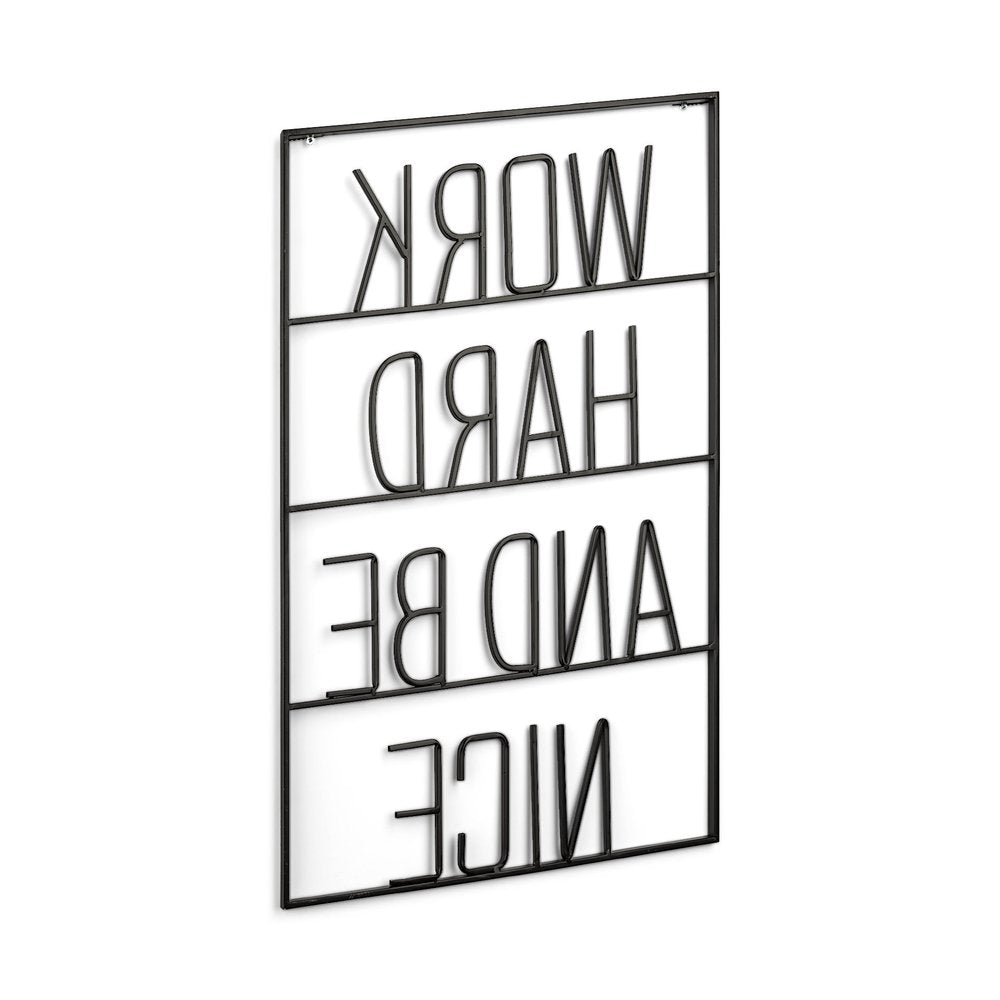 This 17-inch x 26-inch black work hard and be nice metal wall decor will add a beautiful decorative accent to your walls. Our words matter. Handmade with care, this piece brings some authenticity to your space. Instantly liven up your space with this text decor that brings sentiment, color, and dimension to your walls. This good looking decor will fill the empty space on your wall while adding a stylish and decorative touch. Utilize this opportunity to create a focal point in the room with this fabulous wall decor option. 17.3-inch h x 25.99-inch w x 0.52-inch d.