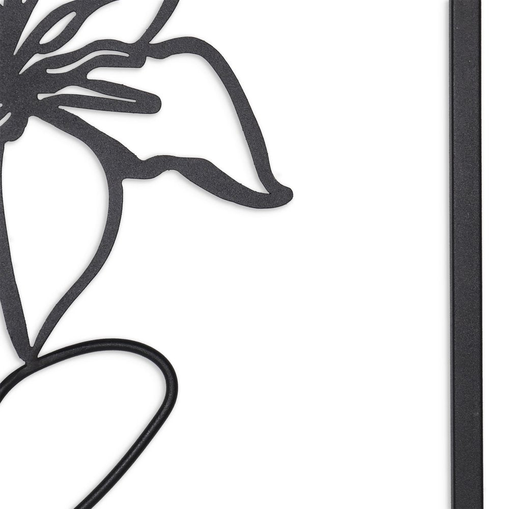 This 20-inch x 14-inch black metal hanging dimensional sculpture will add a beautiful decorative accent to your decor. Instantly liven up your space with this art that brings color and dimension to your walls. This good looking decor will fill the empty space on your wall while adding a stylish and decorative touch. Utilize this opportunity to create a focal point in the room with this fabulous wall decor option. 20-inch h x 14-inch w x 1-inch d