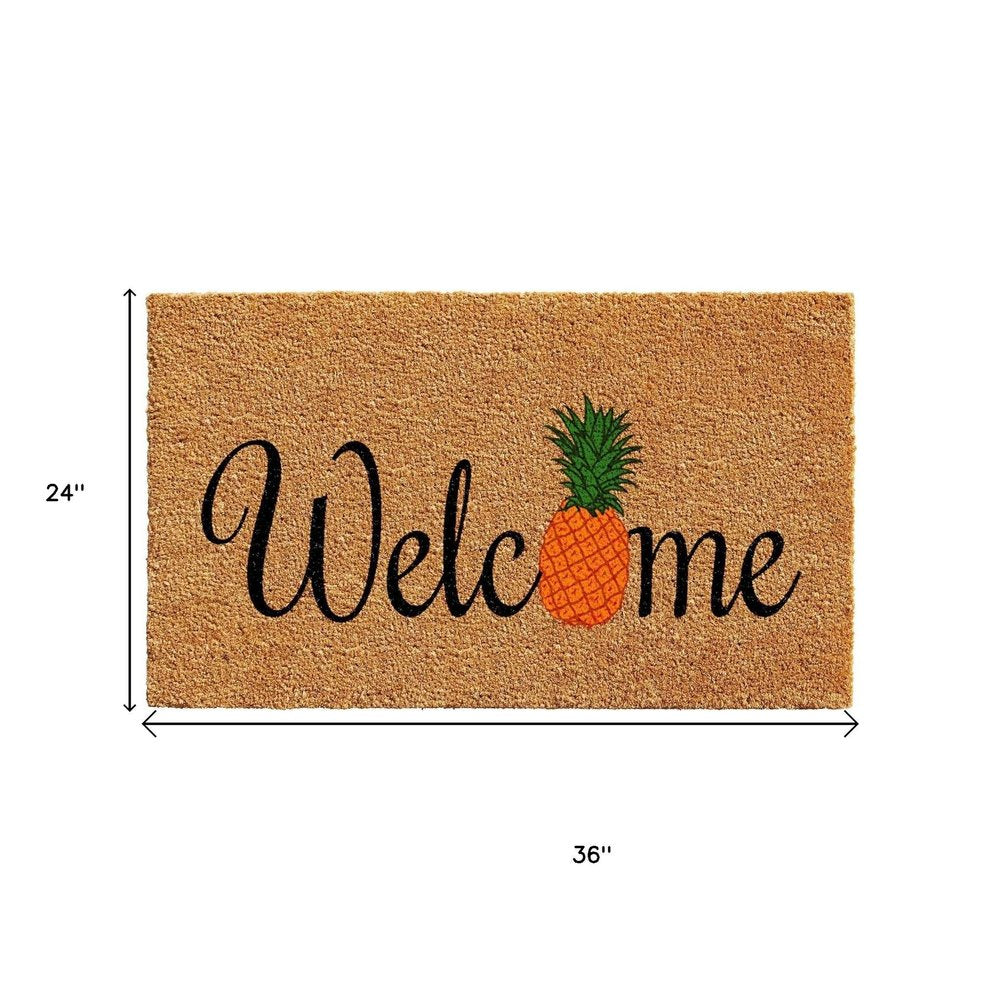 24" X 36" Black And Natural Coir Pineapple Welcome Outdoor Door Mat