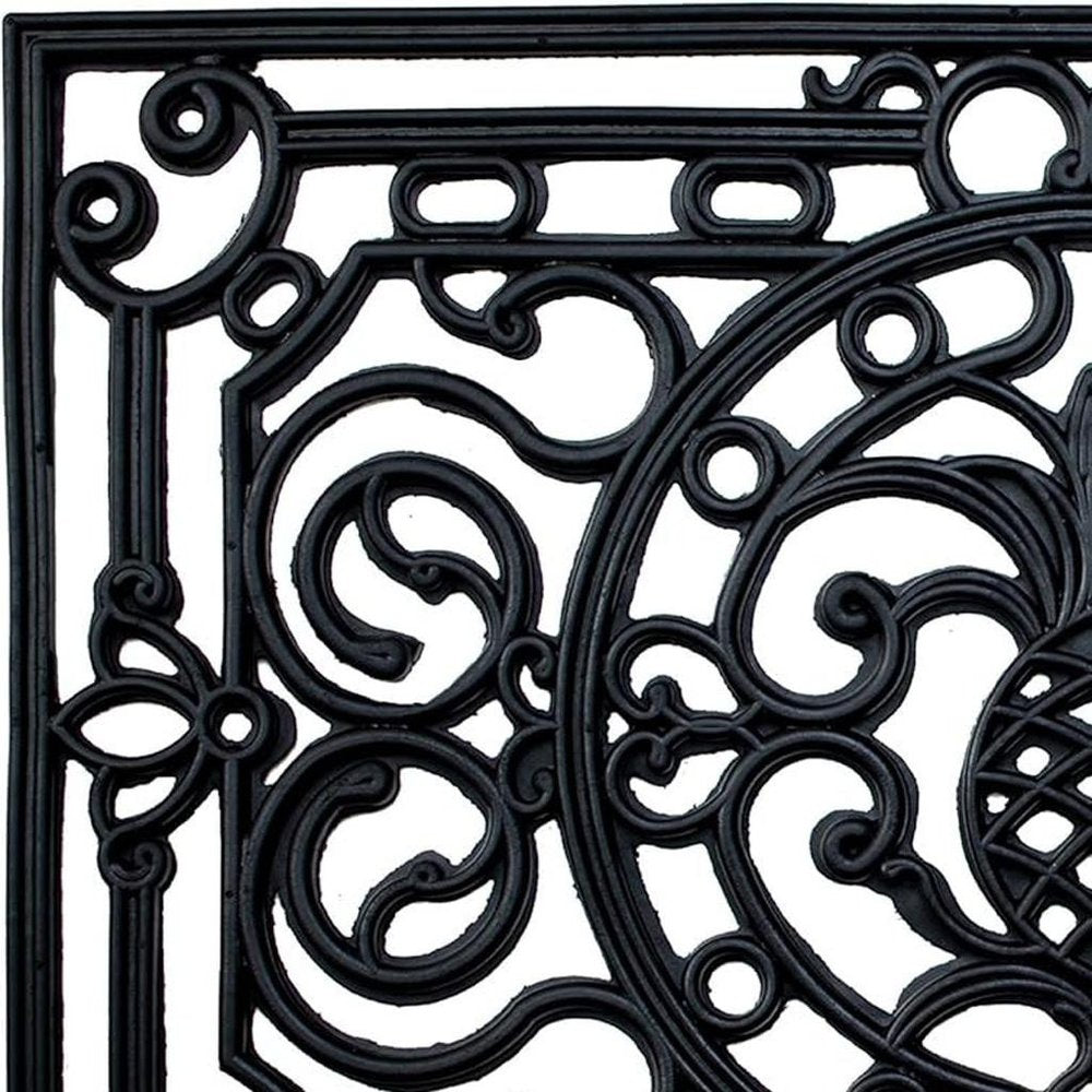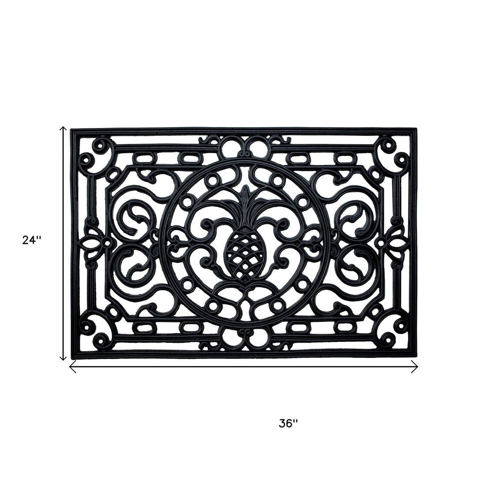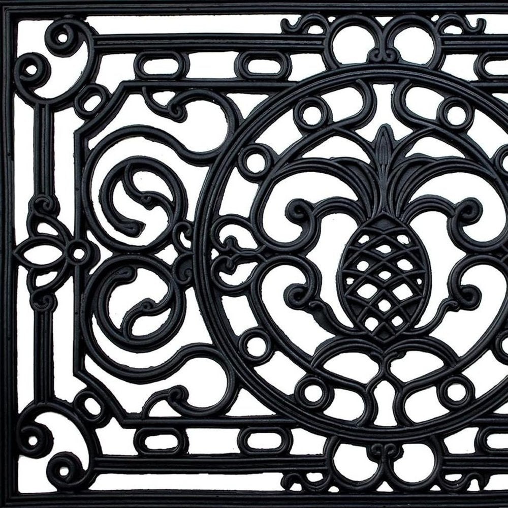 24" X 36" Black Pineapple And Scrollwork Outdoor Rubber Door Mat
