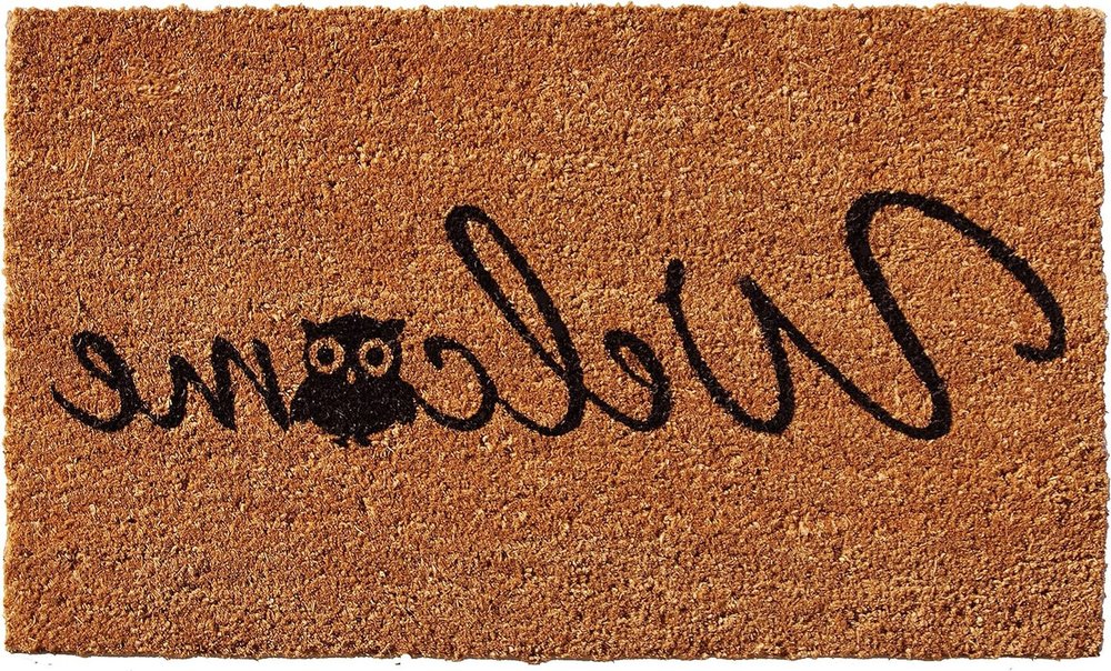 24" X 36" Natural And Black Owl Welcome Outdoor Coir Door Mat