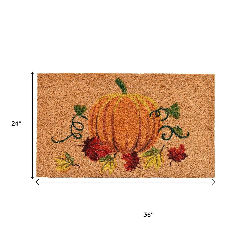 24" X 36" Natural And Orange Coir Pumpkin Outdoor Fall Door Mat