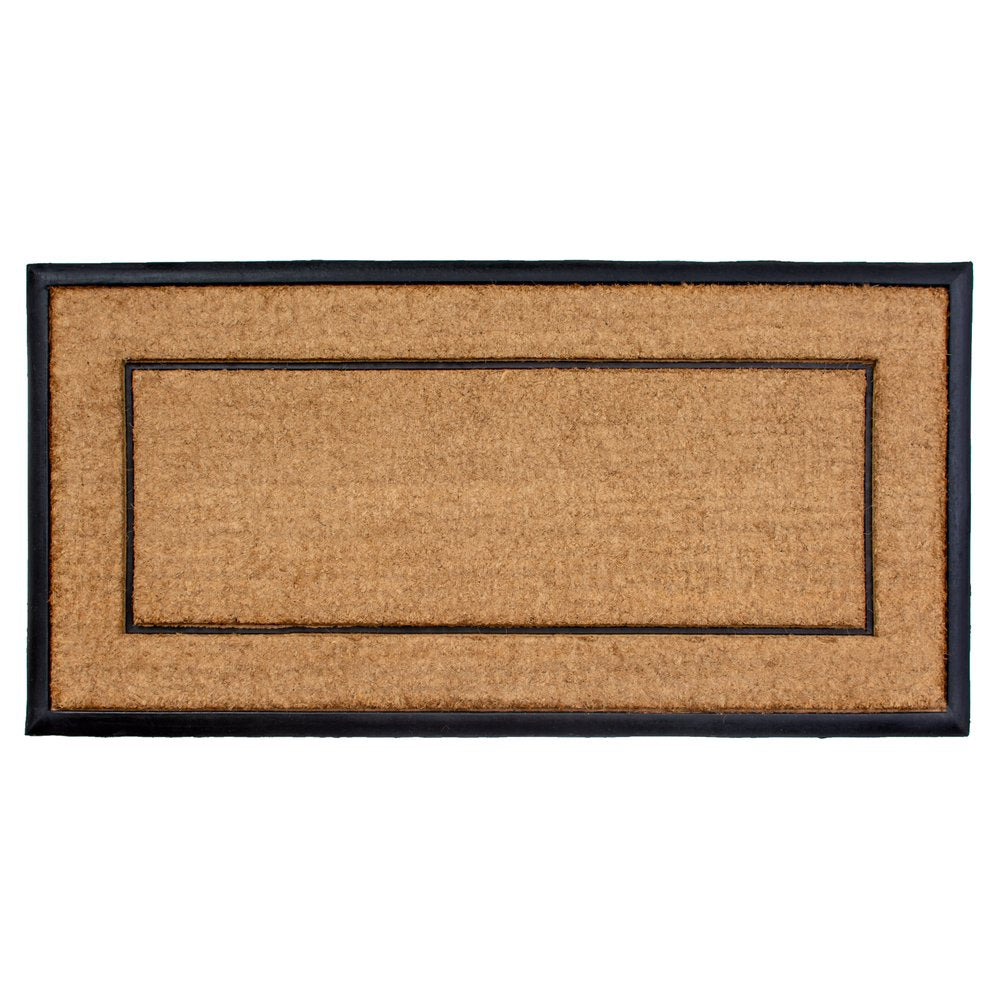 Known for it's extreme durability and ability to withstand heavy foot traffic, this 24-inch x 48-inch natural and black striped border outdoor coir and rubber door mat is an ideal option for the front door or entrance way of your home or business. Crafted from a stylish mix of materials, this mat is easy to clean and is an efficient way to clean dirt and mud from shoes before entry. The modern minimalist design adds a touch of elegance and sophistications to welcome all who enter with style. 24-inch h x 48-inch w x 1-inch d.