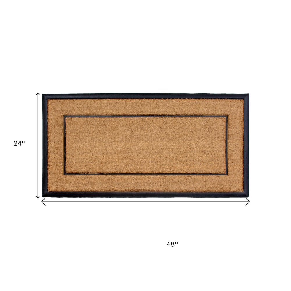 24" X 48" Natural And Black Striped Border Outdoor Coir And Rubber Door Mat