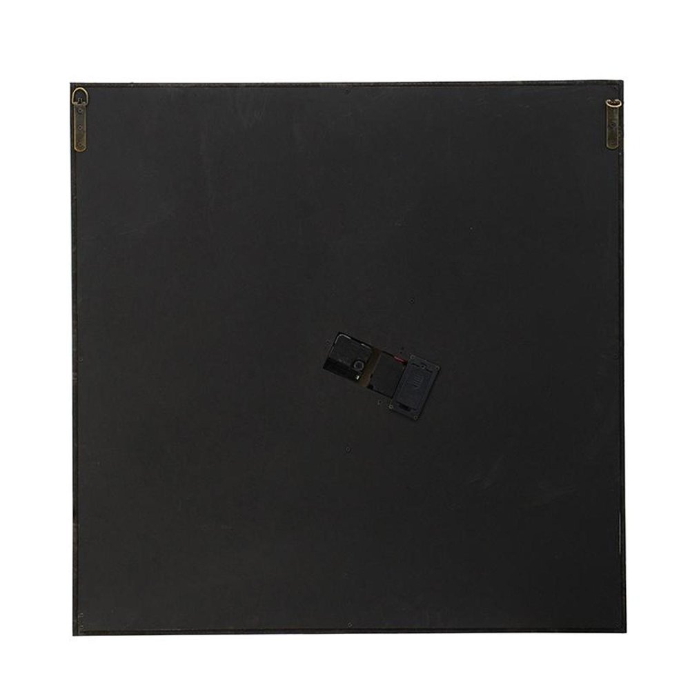 This 32-inch square gold and silver wood and mirror analog exposed gear wall clock includes three moving hands on the face that move smoothly to indicate the hour, minute and seconds. Features a practical, straight-edged square shape. The clock face made from mirrored glass is reflective, beautiful and will add a modern touch. This clock was skillfully made with a purposefully distressed and vintage style finish. Stay on track with this elegant and efficient clock. With its unique design and practical purpose, this clock will add flair to your home while also acting as an essential tool. 31.5-inch H x 31.5-inch W x 3.1-inch D