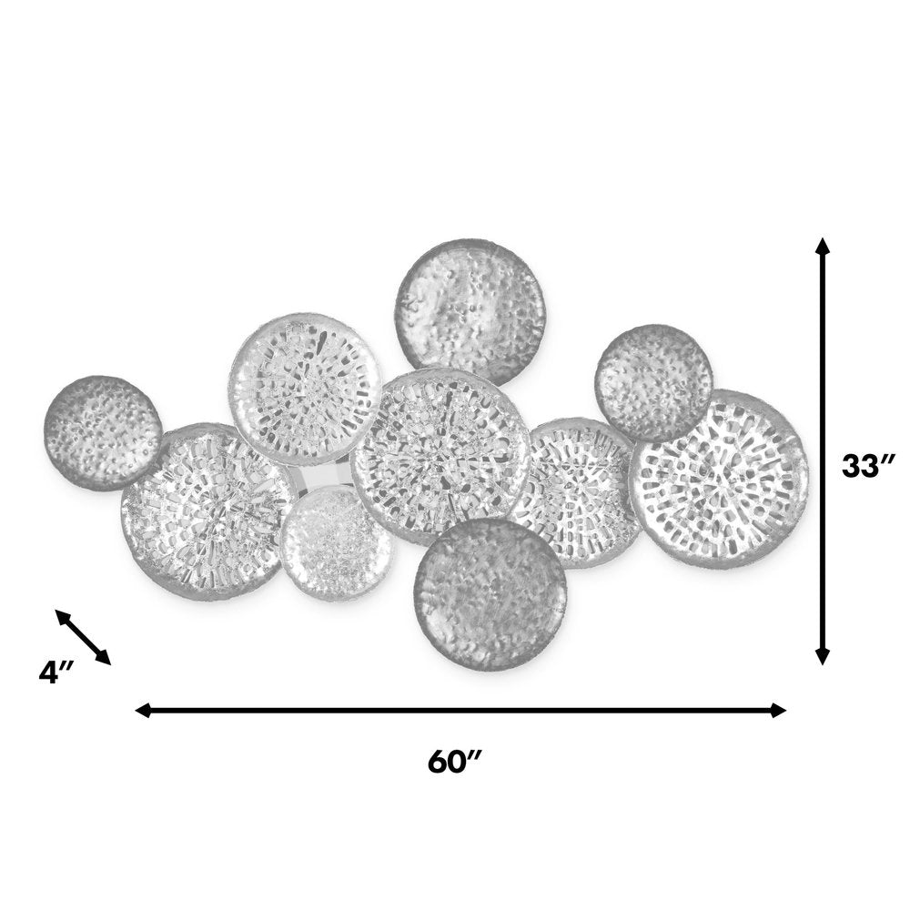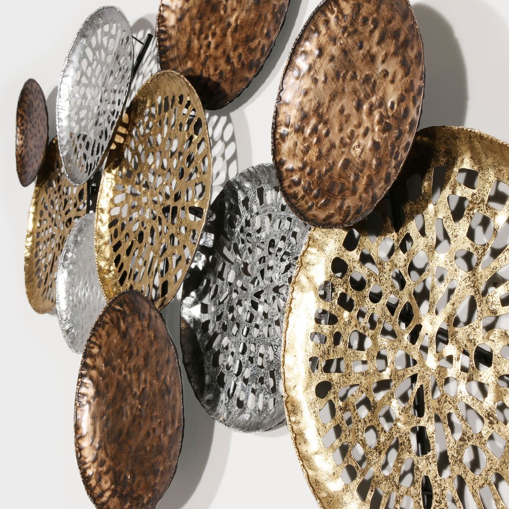 The 33-inch x 60-inch gold and silver metal hanging dimensional sculpture is the perfect decorative accessory for your home. Instantly liven up your space with this art that brings color and dimension to your walls. Hang on your wall to add some up to date fashion and decoration. Utilize this opportunity to create a focal point in the room with this fabulous wall decor option. 33-inch h x 60-inch w x 4-inch d