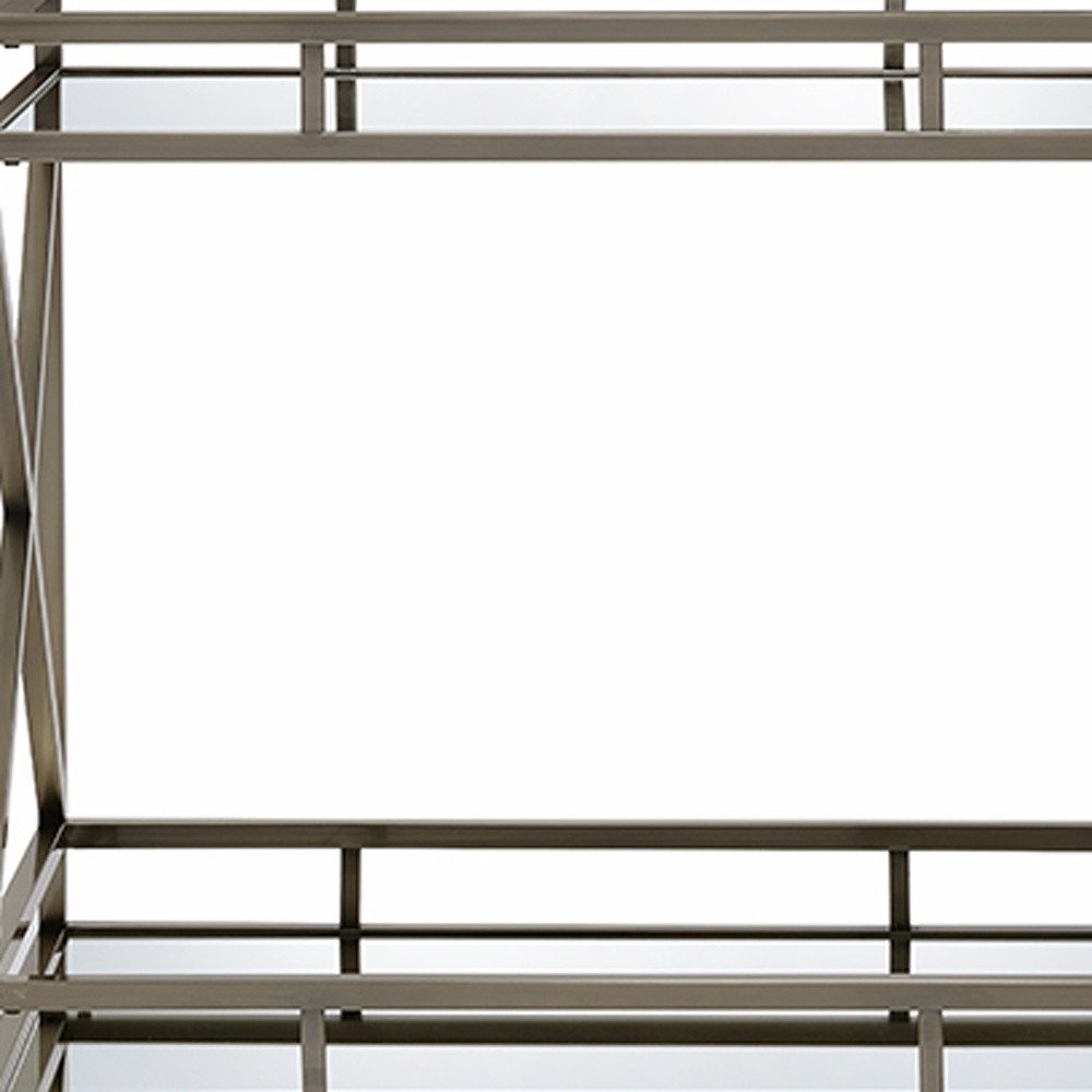 This serving cart stands at the extreme of sophistication and with its fashionable platforms, meals can better be served. Its shimmering antique gold frame highlights beautifully the whole design to give it an inspiring profile. This masterpiece features four elegant caster wheels and grips for easy mobility. The serving cart comes with two mirrored shelves that provide ample space for trays, plates and other serving details. Weight capacity: 20Lbs.