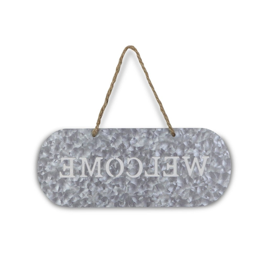 Add an air of fashion to your room and rejuvenate the space with this 5-inch x 11-inch gray handcrafted welcome galvanized metal wall decor. Add some rustic charm with this handcrafted oval welcome sign. Hang on your wall to add some up to date fashion and decoration. 4.5-inch H x 11-inch W x 0.5-inch D