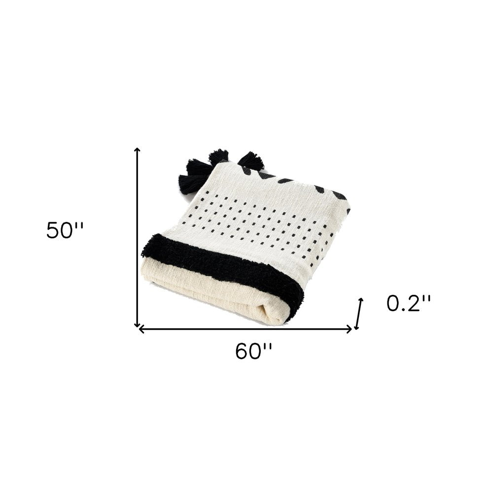 60" X 50" Black and White Woven Cotton Striped Throw Blanket with Tassels