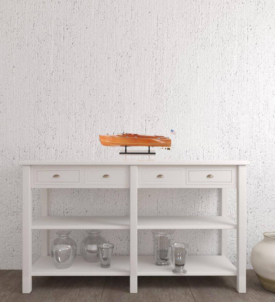 Add an air of fashion to your room and rejuvenate the space with this 8" wooden manufactured wood hand painted decorative boat. High-quality manufactured wood used in this wooden sculpture is both good looking and hard wearing. A perfect decorative addition for anyone who loves a stylish look and feel. You can be certain that you'll be leaving an impression with this unique piece. 7.75" H x 24.5" W x 7" D