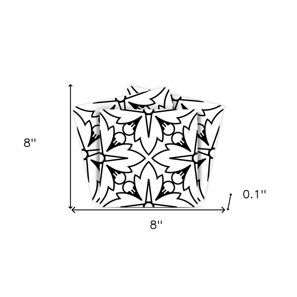 8" X 8" White and Black Cross Peel and Stick Removable Tiles