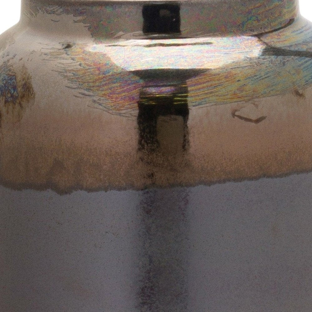 Add a touch of contemporary elegance to your space with this stunning 9-inch black and blue striped cylinder clay table vase. The sleek cylinder shape and the striking black and blue color combination make it a standout piece for any room. Crafted from high-quality clay, this vase exudes a modern flair that will elevate your home decor effortlessly. Place it on a side table, shelf, or mantel to showcase its unique design and add a pop of color to your living space. Whether with or without flowers, this vase is sure to make a stylish statement in your home. 8.5-inch H x 7-inch W x 7-inch D