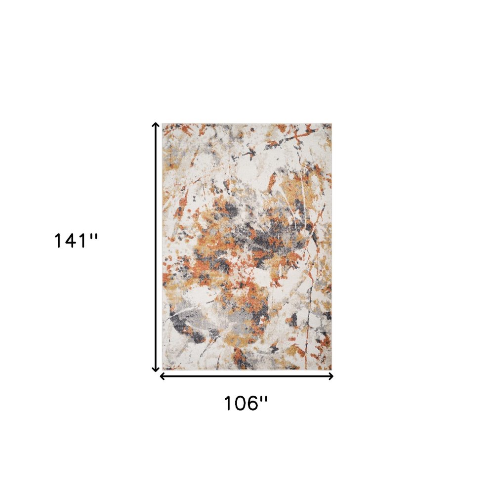 9' X 12' Ivory Orange And Gray Abstract Area Rug
