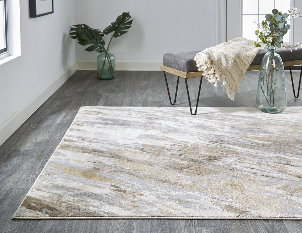 This 9' x 12' ivory tan and brown abstract area rug, is a great way to add warmth to a room. This rectangle shaped rug features a abstract design in ivory tan and brown to give it visual interest. A classic shape marries with good looking design for your space Made in Turkey, this rug offers high quality combined with good looking designer sensibilities. Area Rugs help to give warmth and sense of home to your space. 0.39" H x 108" W x 144" D
