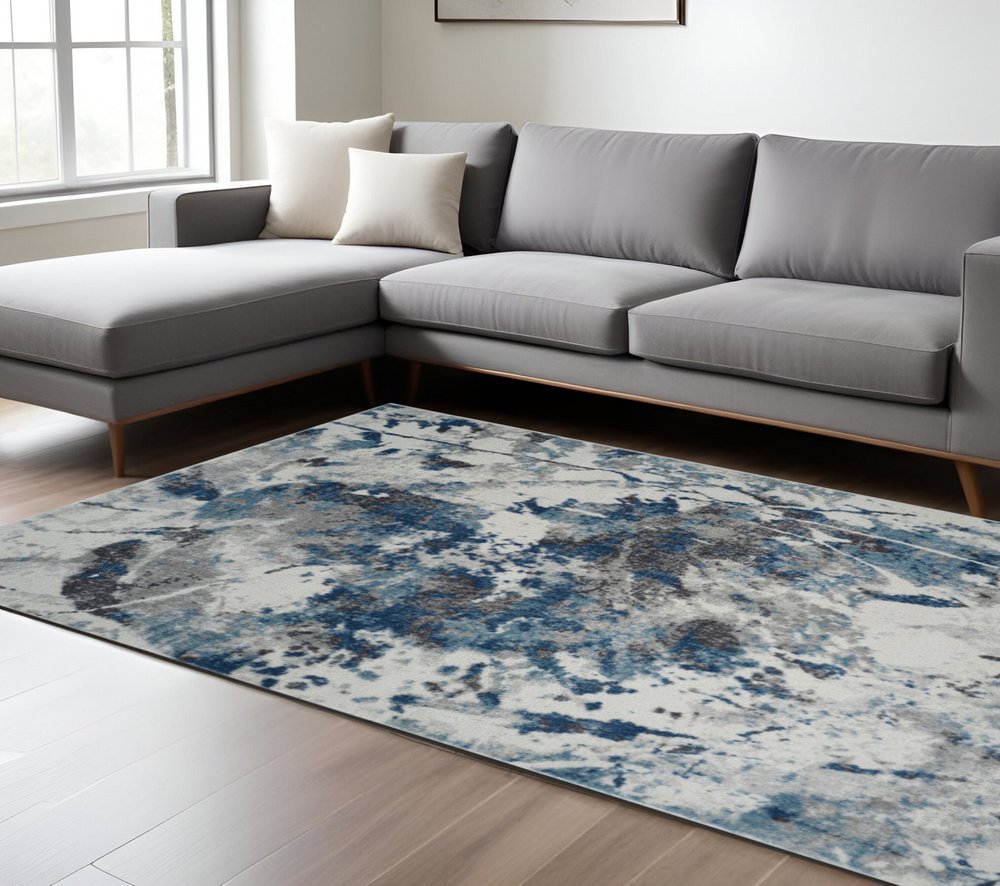 Add some artistry to your room with this 9-foot x 12-foot ivory teal and black abstract area rug. Ideal for spaces with kids and pets, this rug is stain resistant to help repel dirt and spilled liquids. Built to last, this rug crafted from polypropylene fibers is known for its durability and long lasting appeal. Rugs are a great way to showcase your style, hide imperfections, warm your home and reduce noise. This larger sized, modern styled rug is ready to create a focal point or statement piece in your room. 106.00-inch h x 141.00-inch w x 0.30-inch d.