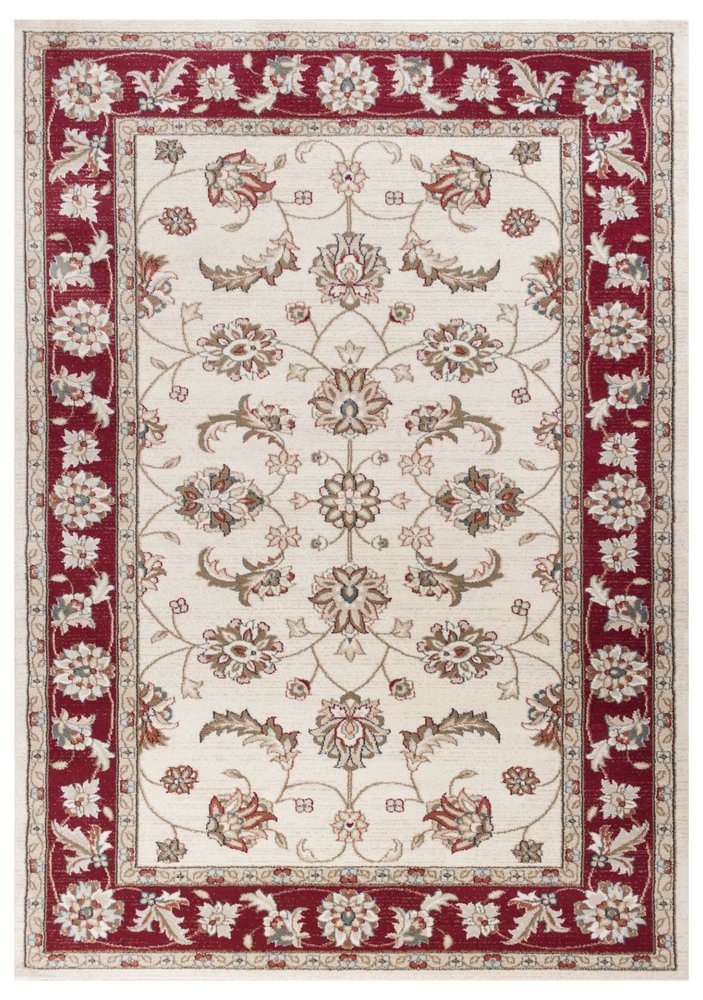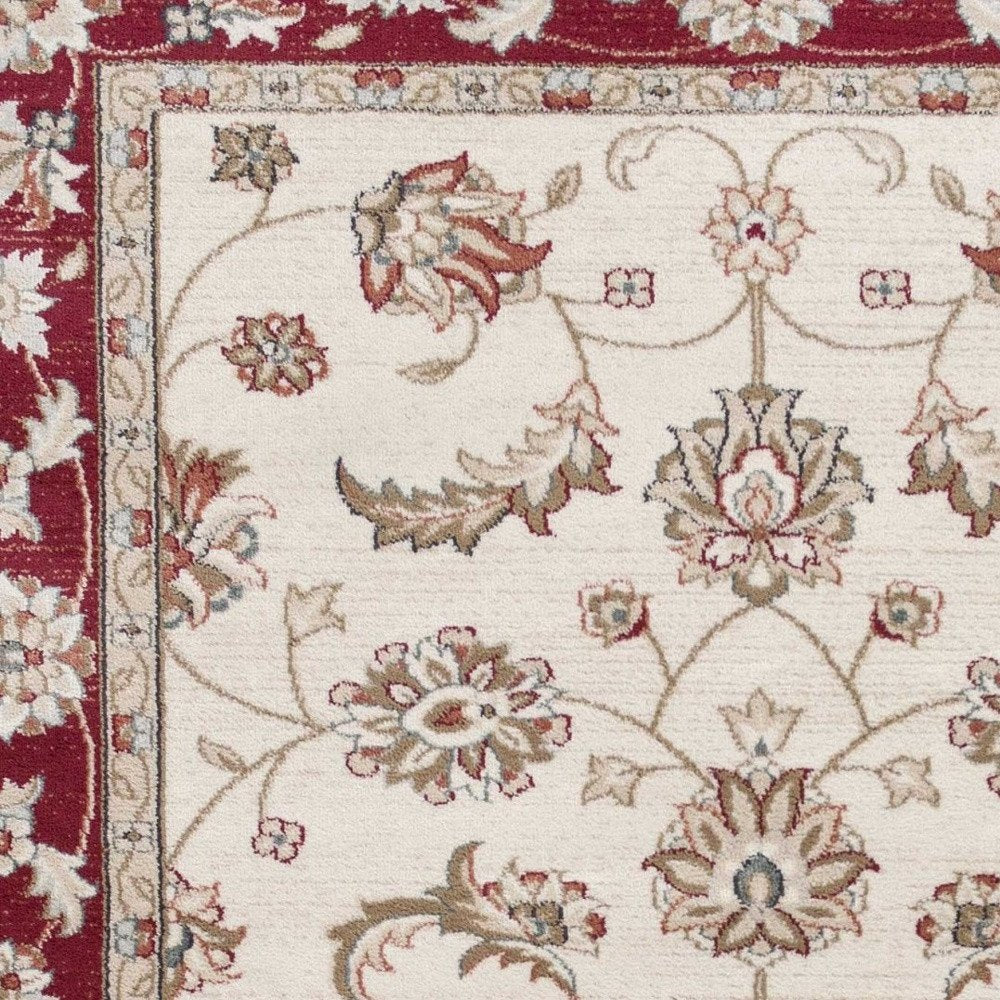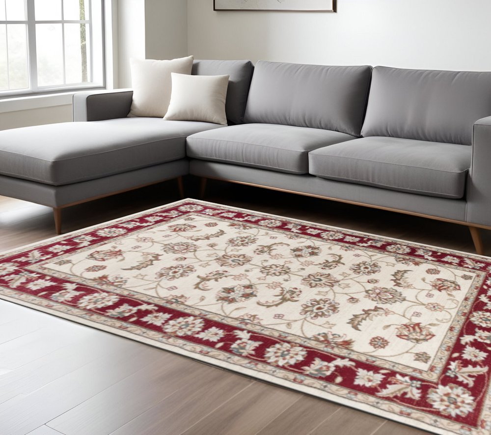 This 9-foot x 12-foot red and ivory floral medallion area rug is a great way to add warmth to a room. Built to last, this rug crafted from polypropylene fibers is known for its durability and long-lasting appeal. Rugs are a great way to showcase your style, hide imperfections, warm your home and reduce noise. This larger sized, traditional styled rug is ready to create a focal point or statement piece in your room. 108.00-inch h x 144.00-inch w x 0.50-inch d.