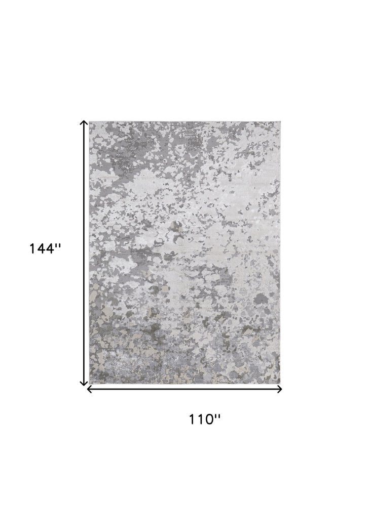 9' X 12' Silver Gray And White Abstract Area Rug