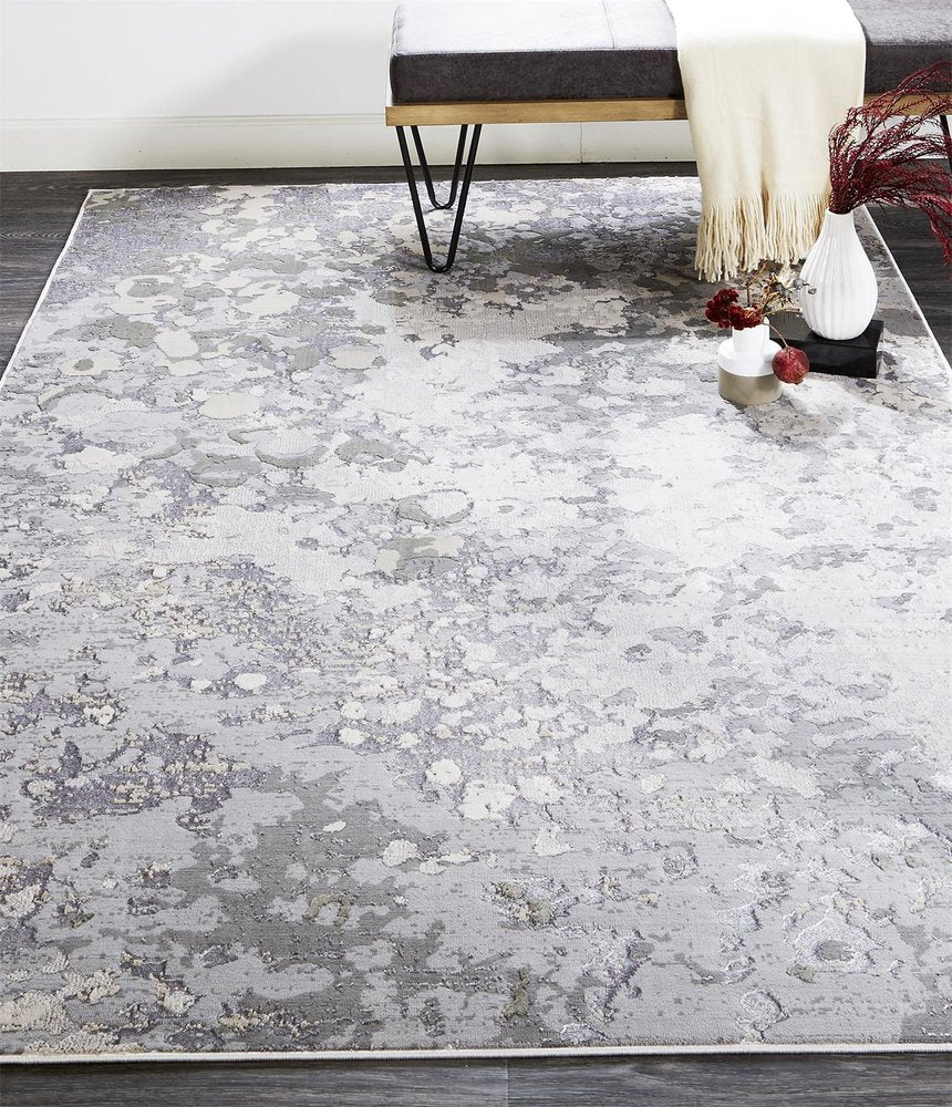Set an inviting tone in your space with this 9' x 12' silver gray and white abstract area rug. This rectangle shaped rug features a abstract design in silver gray and white to give it visual interest. A classic shape marries with good looking design for your space Made in Turkey, this rug offers high quality combined with good looking designer sensibilities. Area Rugs help to give warmth and sense of home to your space. 0.39" H x 110" W x 144" D