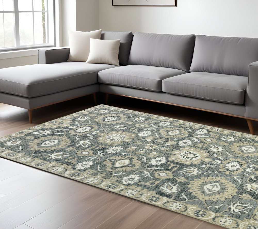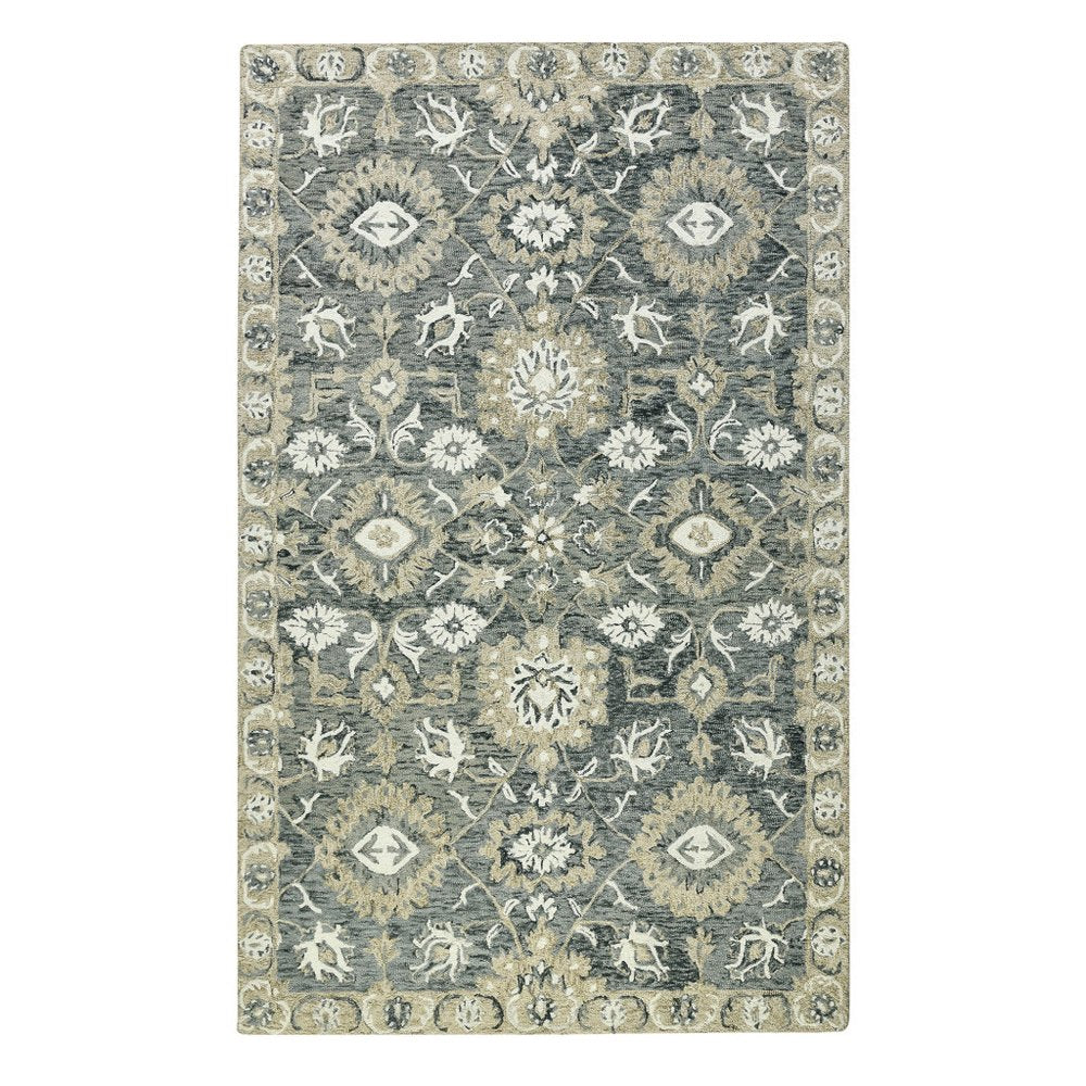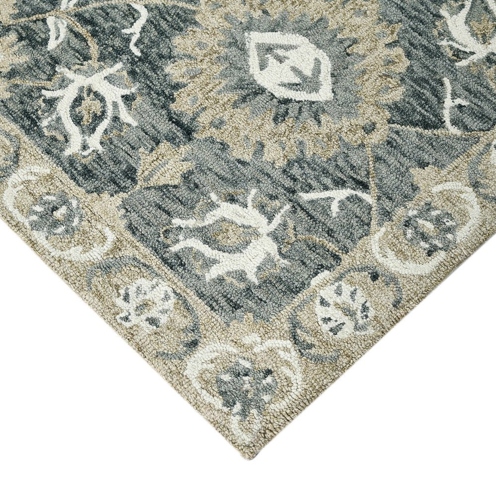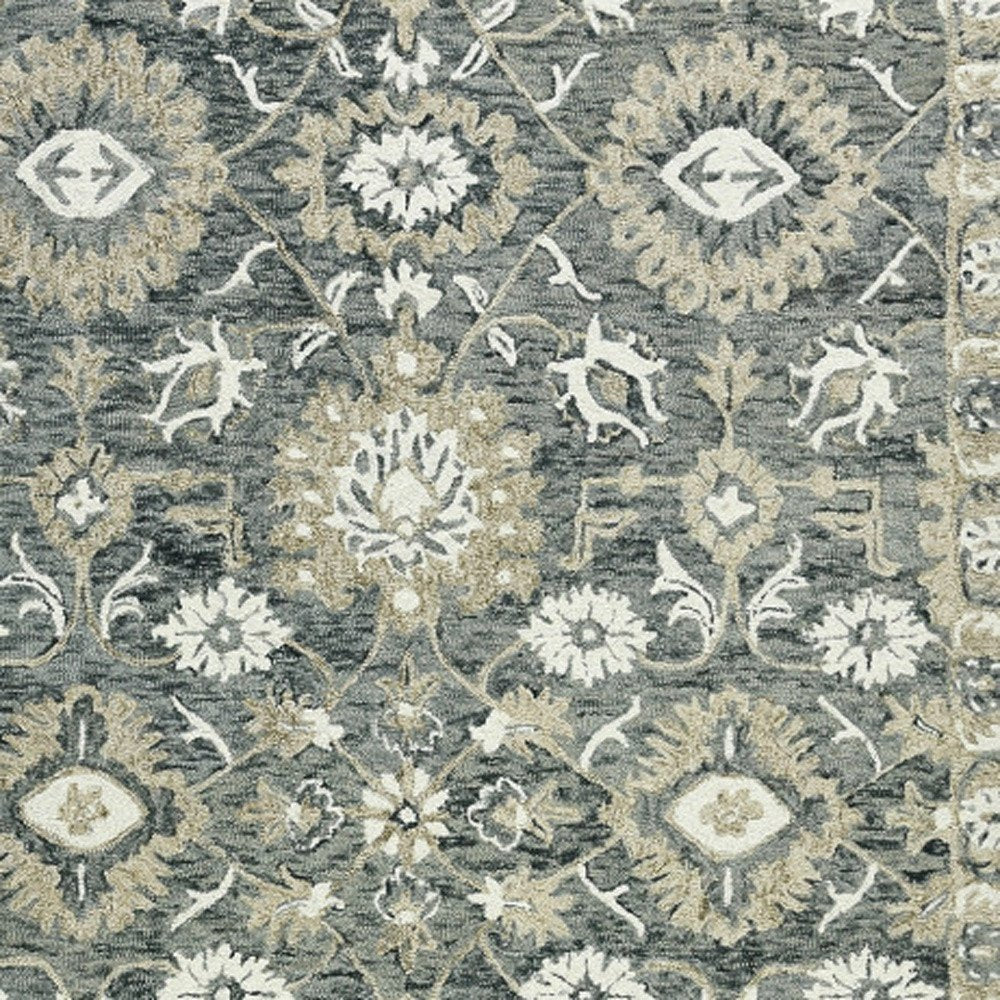 Add some artistry to your room with this 9-foot x 13-foot gray ivory and beige wool floral medallion hand hooked area rug. Crafted by skilled artisans, this hand hooked rug is genuine and unique. No two will be exactly alike. Rugs are a great way to showcase your style, hide imperfections, warm your home and reduce noise. This larger sized, traditional styled rug is ready to create a focal point or statement piece in your room. 108.00-inch h x 156.00-inch w x 0.40-inch d.
