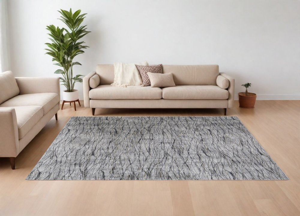 9' X 13' Gray Ivory and Tan Abstract Power Loom Area Rug