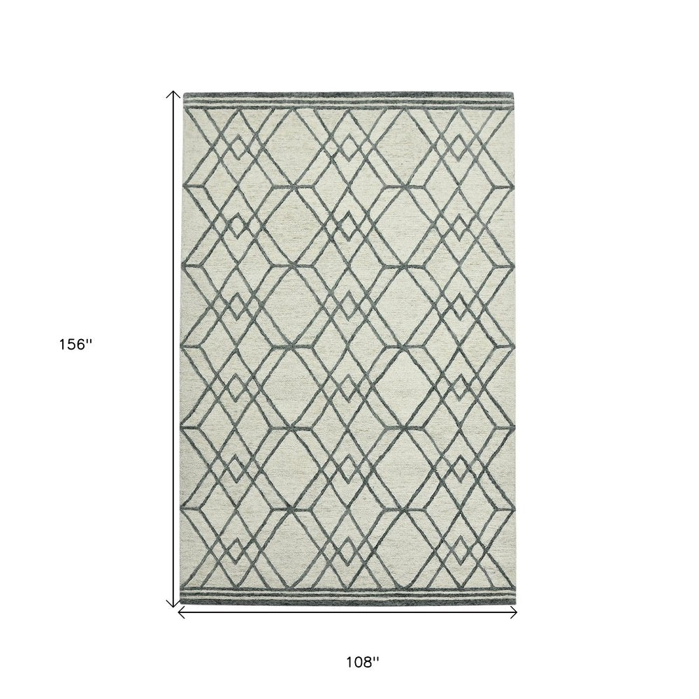 9' X 13' Ivory And Gray Wool Geometric Hand Hooked Area Rug