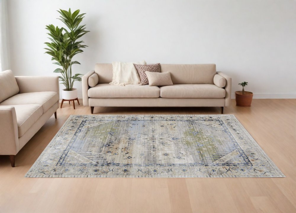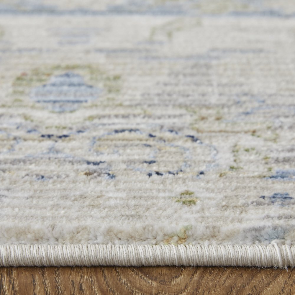 Add great coloration and comfortable texture to your space with this 9-foot x 13-foot ivory green and blue abstract power loom worn faded area rug. This rectangle shaped rug features a abstract design that will add a functional and decorative accent to your space. Ideal for spaces with kids and pets, this rug is stain resistant to help repel dirt and spilled liquids. This larger sized rug is ideal to create a focal point or statement piece in your room. 108-inch h x 152-inch w x 0.47-inch d