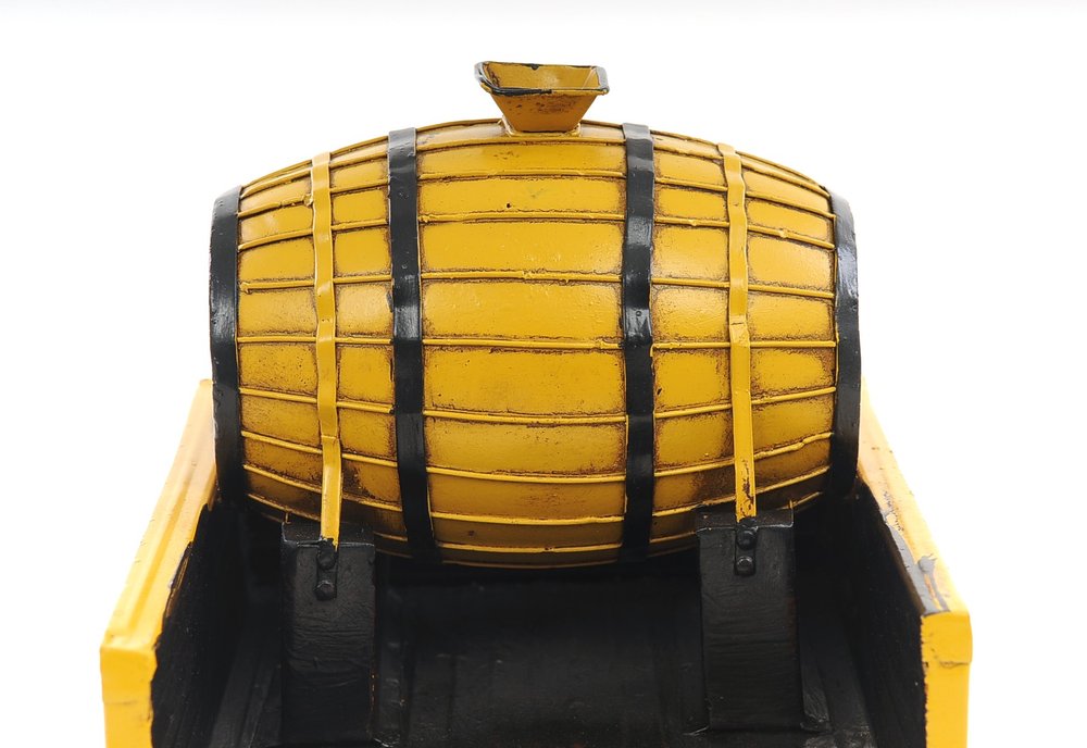 The Yellow Rocket Steam Engine Model Train considered by many the most advanced locomotive of its day. This handcrafted model is made with great care by skilled artisans. The sturdy iron frame is coupled with intricate detailes including metal rolling wheels and a detachable tender carraige that is hooked on. The exterior accessories such as the tall smokestack chimney are securely welded on demonstrating the high quality and authenticity of this piece. 12.5" x 18" x 5"