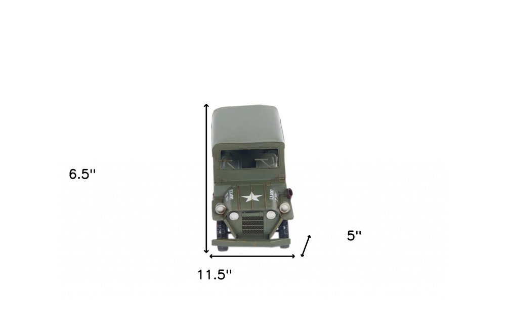 The amazing c1940 Willys Quad Overland Jeep Sculpture takes to the beginning of the Jeep American heritage. It pays homage to the first Willys Quad model that was delivered to the US Army at the beginning of WWII. Skilfully hand-made from metal, it features authentic exterior details as the convertible top, rolling wheels, spare tires, and a super cool U.S. Army decal on the hood. It is a perfect gift for car collectors and WWII enthusiasts. 6.5" x 11.5" x 5"