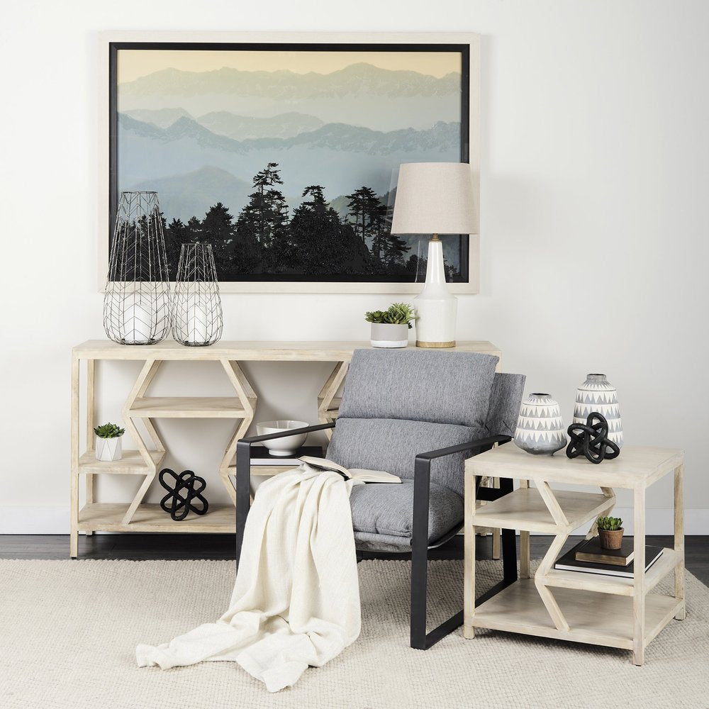 With this Petite Black Metal Chain Link Sculptureyou can add the perfect touch of industrial design to your home. This piece is made from solid metal and has a vintage inspired black finish on top. There are three separate oval metal shapes that intersect to create this 3D chain link shape. This decor piece will look great in any room in your home owing to its neutral colorway. Display it on your bookshelf, or use it as coffee table decor. 7" H x 7" W x 7" D