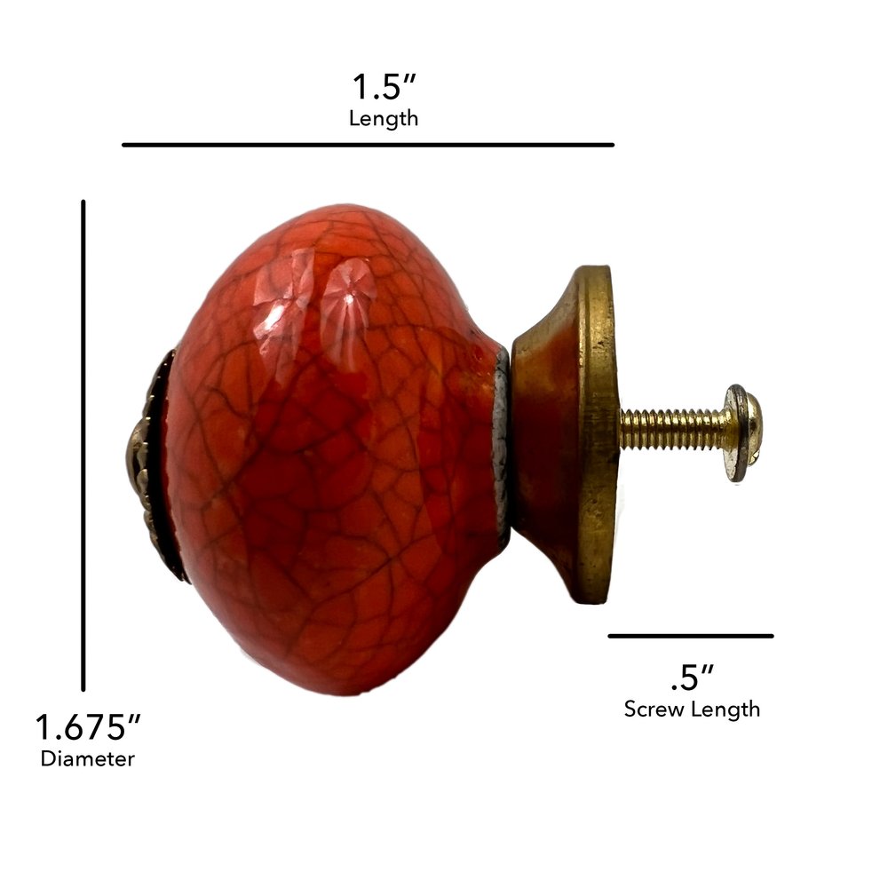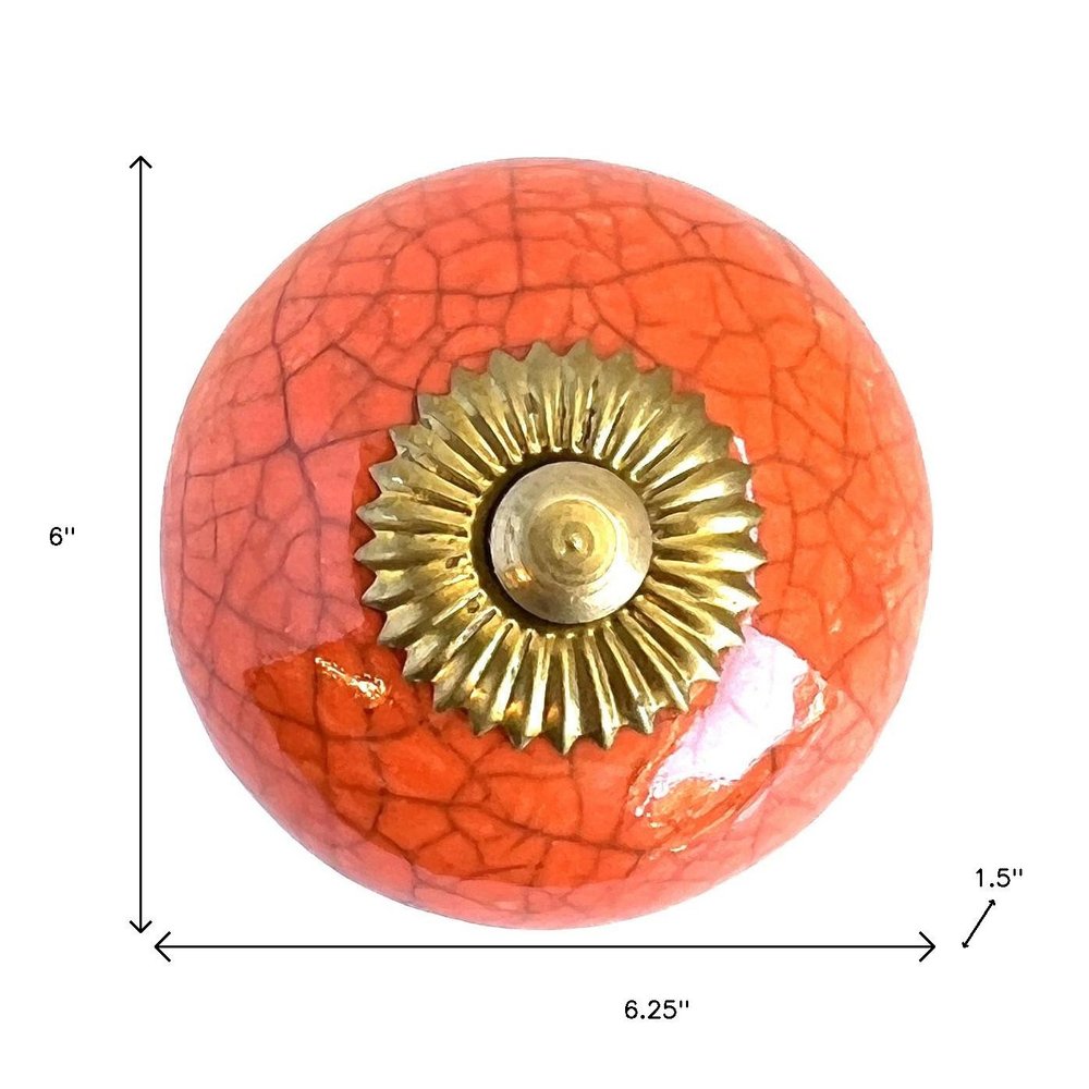 Upgrade your space with a high end look with this set of six coral and gold ceramic drawer pull knobs. Hand-painted by talented artisans, these knobs will add a touch of artisanal design. The round shape provides a classic appeal that complements various decor styles. Crafted from durable ceramic, these knobs bring both elegance and longevity to your furniture. Each knob comes with screws included for easy installation, ensuring a hassle-free upgrade to your drawers and cabinets. Enjoy the perfect blend of functionality and style with this exquisite set. 6-inch h x 6.25-inch w x 1.5-inch d.