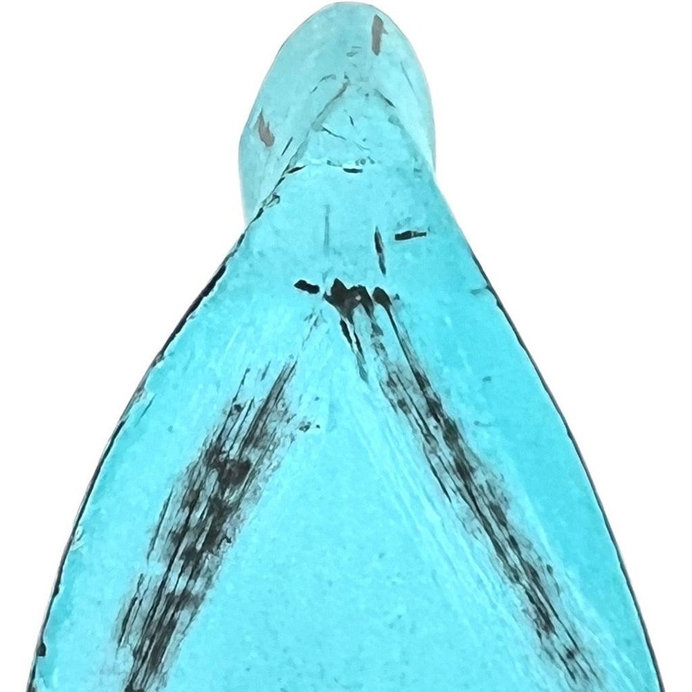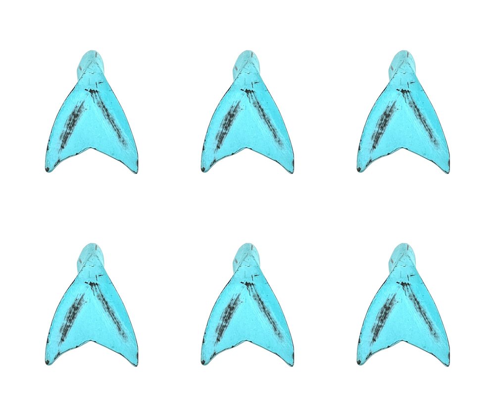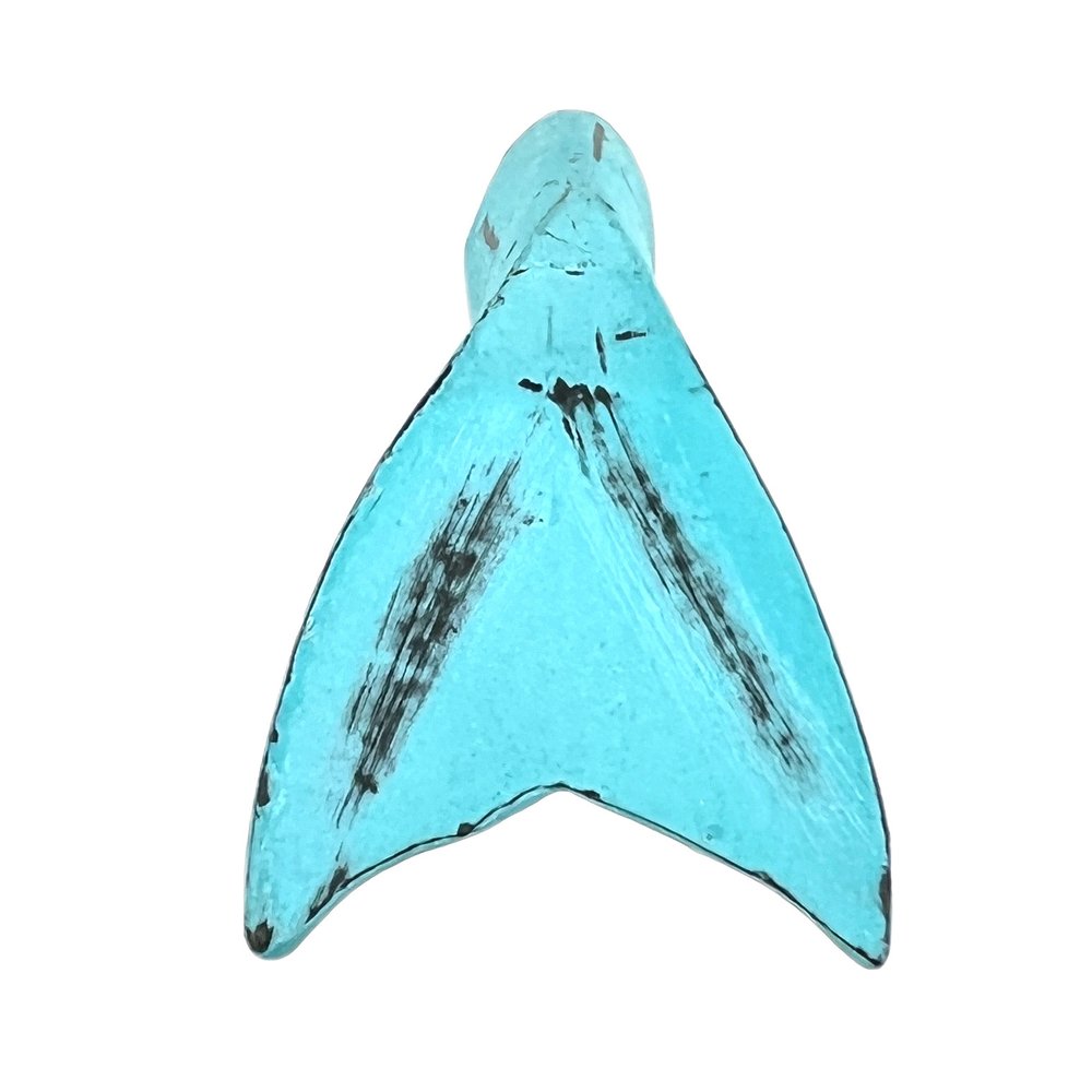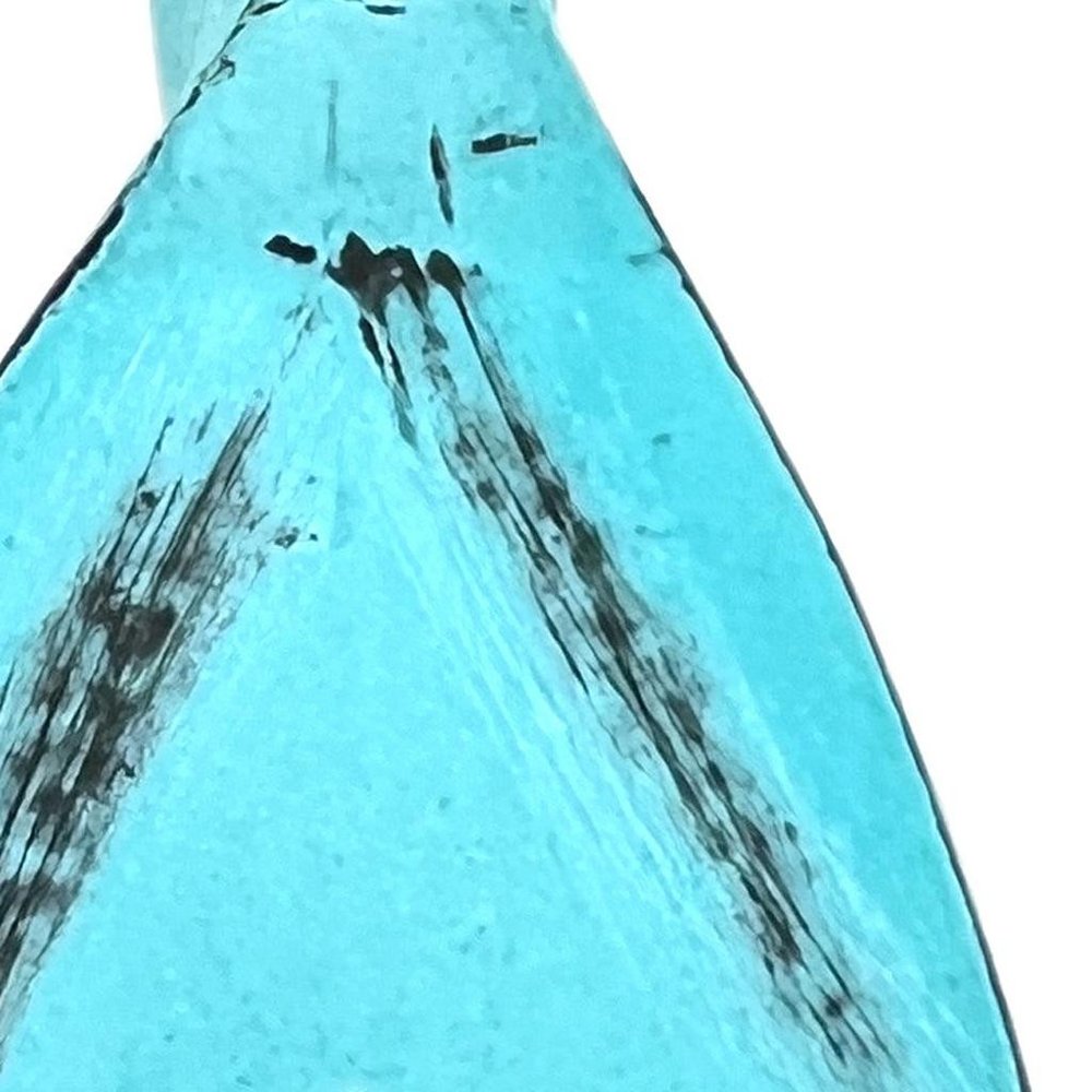 Give your drawers or cabinets a facelift with this set of six distressed aqua metal triangular drawer pull knobs. Hand-painted by talented artisans, these knobs will add a touch of artisanal design. Crafted from durable metal, they offer both strength and aesthetic appeal. Each knob features purposeful distressing, ensuring a unique look for every piece. The included screws make installation a breeze, allowing you to refresh your furniture effortlessly. With their eye-catching color and design, these knobs are perfect for creating a vintage or rustic vibe in your home decor. 6-inch h x 5-inch w x 1.5-inch d.