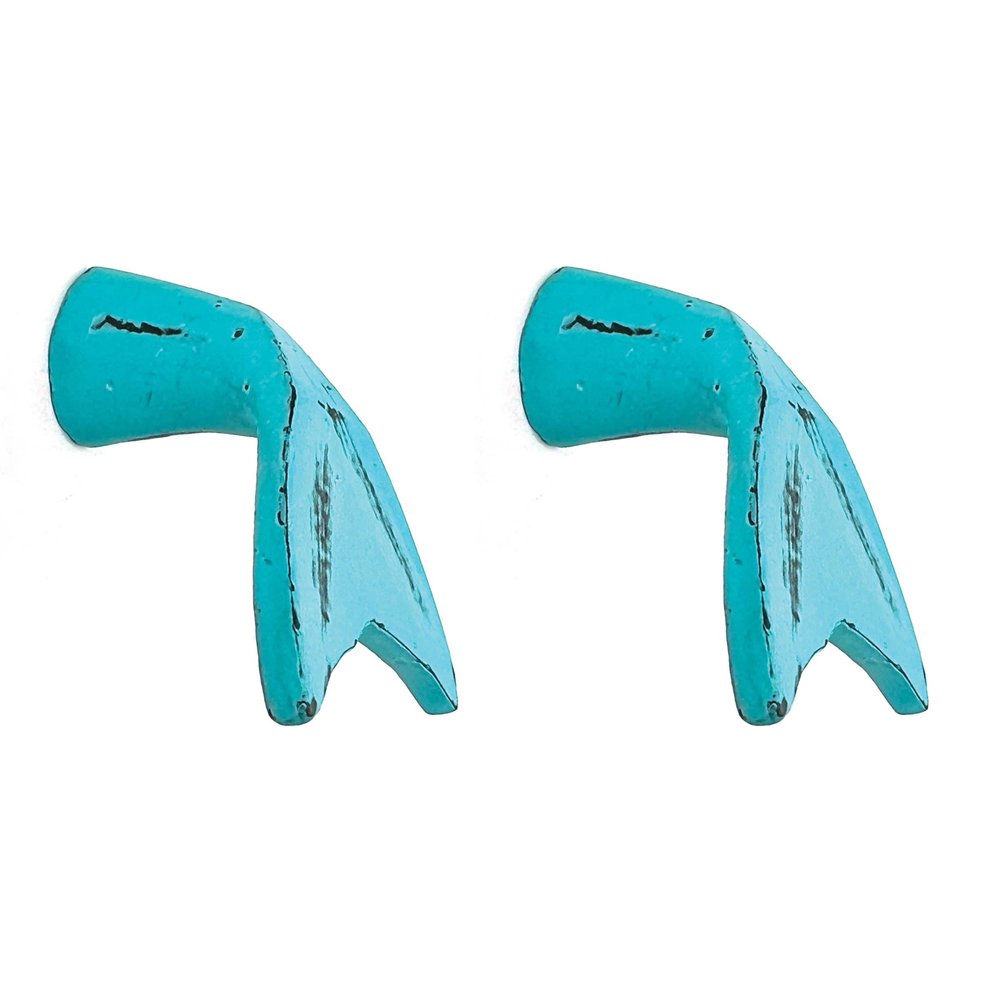 Set of Six Distressed Aqua Metal Drawer Pull Knobs
