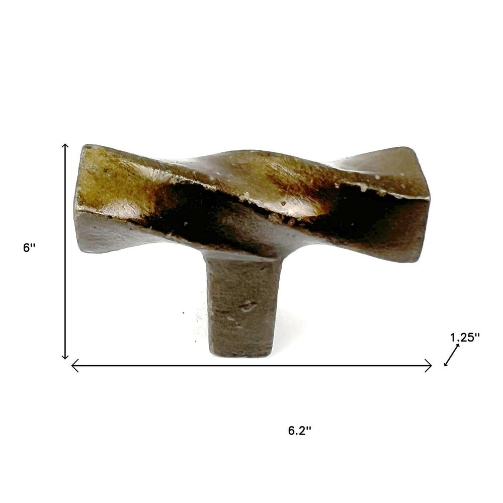 Set of Six Distressed Bronze Twisted Geometric Metal Drawer Pull Knobs