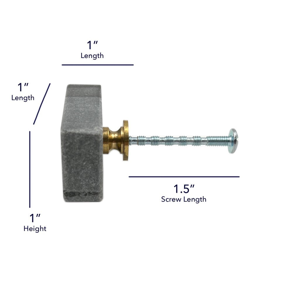 Upgrade your space with a high end look with this set of six gray stone drawer pull knobs. A favorite of designers and dyer's alike, these high quality rectangular shaped knobs are versatile in use and will change up the look of your existing furniture and cabinetry in a snap. With a total of six knobs in this set, you can seamlessly enhance multiple drawers or cabinets, allowing for a cohesive look throughout your home. Embrace elegance and functionality with this stylish addition to your decor. 0.5-inch h x 1-inch w x 2-inch d.
